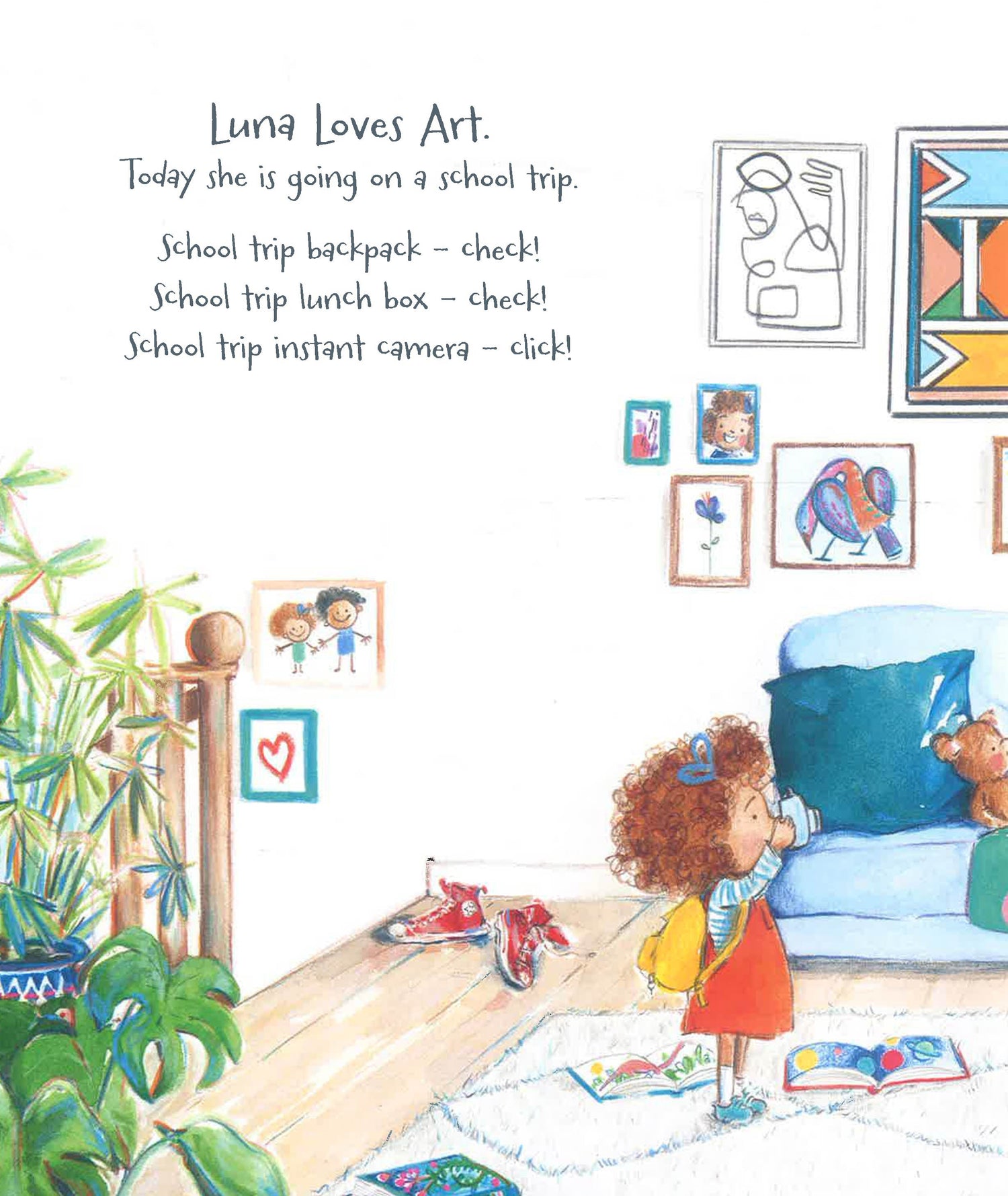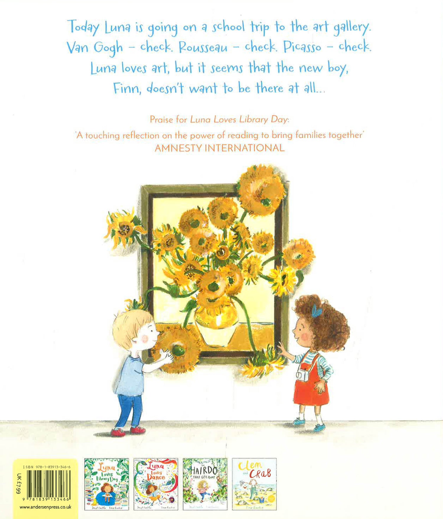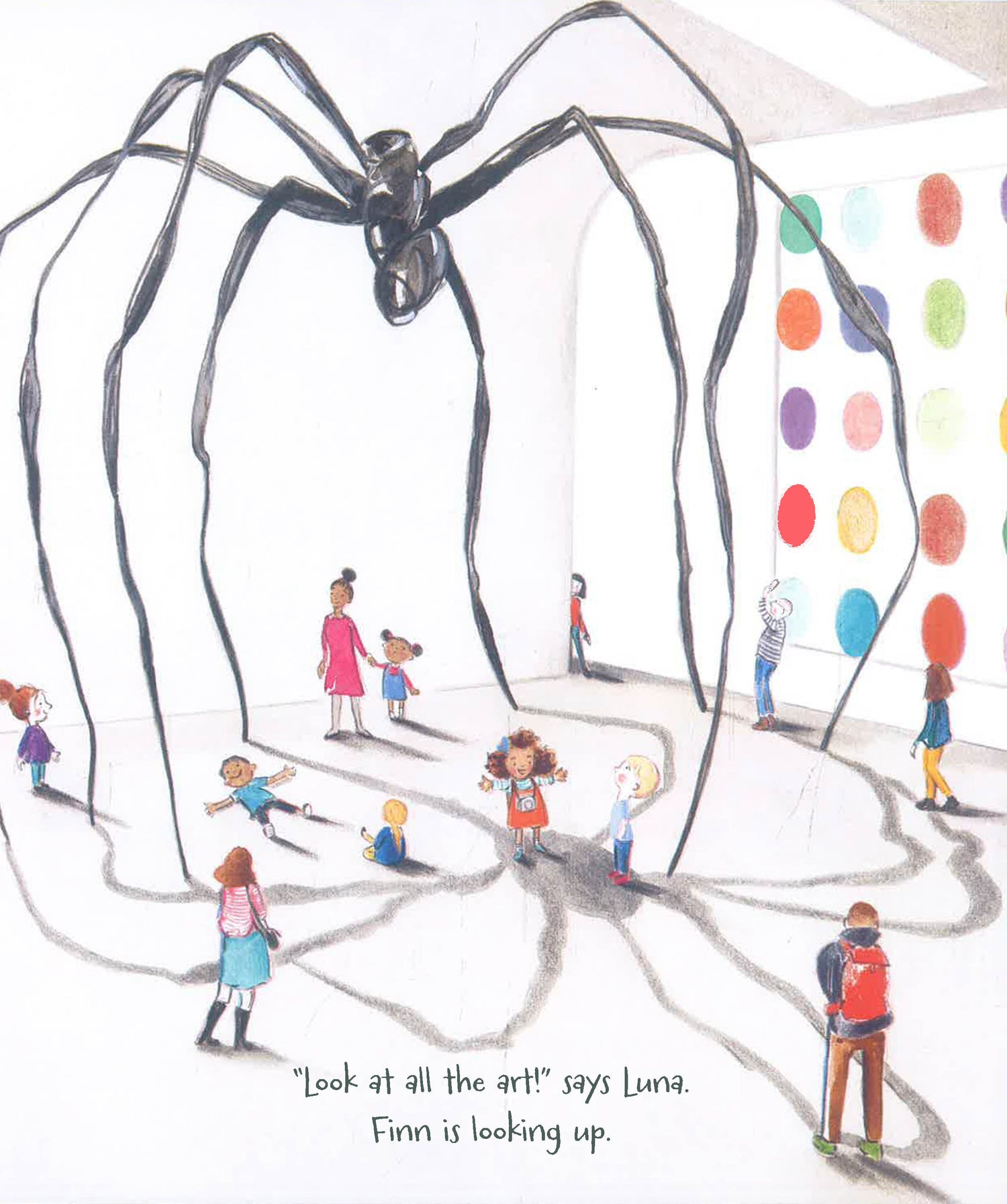 At the gallery, Luna is transfixed by the famous art, but her classmate Finn doesn’t seem to want to be there at all. Finn's family doesn't look like the one in Henry Moore's 'Family Group' sculpture, but then neither does Luna's. Maybe all Finn needs is a friend.