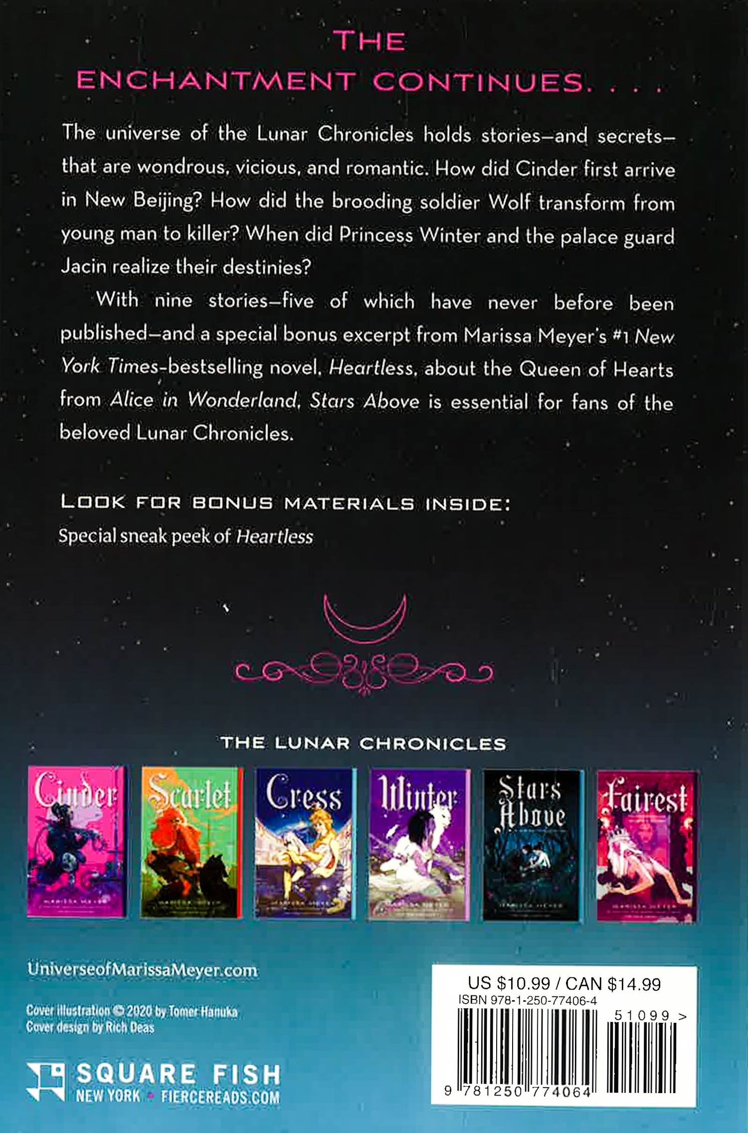The enchantment continues. . . . The universe of the Lunar Chronicles holds stories - and secrets - that are wondrous, vicious, and romantic. How did Cinder first arrive in New Beijing? How did the brooding soldier Wolf transform from young man to killer? When did Princess Winter and the palace guard Jacin realise their destinies? With nine stories - five of which have never before been published - and an exclusive never-before-seen excerpt from Marissa Meyer's upcoming novel, Heartless, about the Queen of Hearts from Alice in Wonderland, Stars Above is essential for fans of the bestselling and beloved Lunar Chronicles.