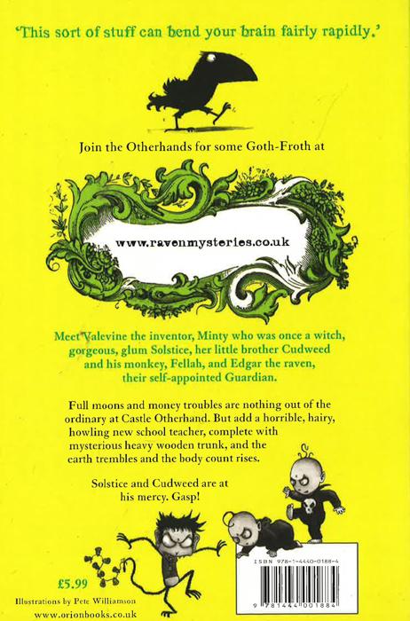Join the wonderfully weird Otherhand family and their faithful guardian, Edgar the raven, and discover the dark secrets of Castle Otherhand. Solstice and Cudweed are appalled to find their father has appointed a new school master. But things get even worse when the grumpy, viciously mean teacher actually arrives. The Otherhand children are sure there's something more to him than meets the eye - the trouble is, who will believe them? No one it seems. Except, perhaps, Edgar.