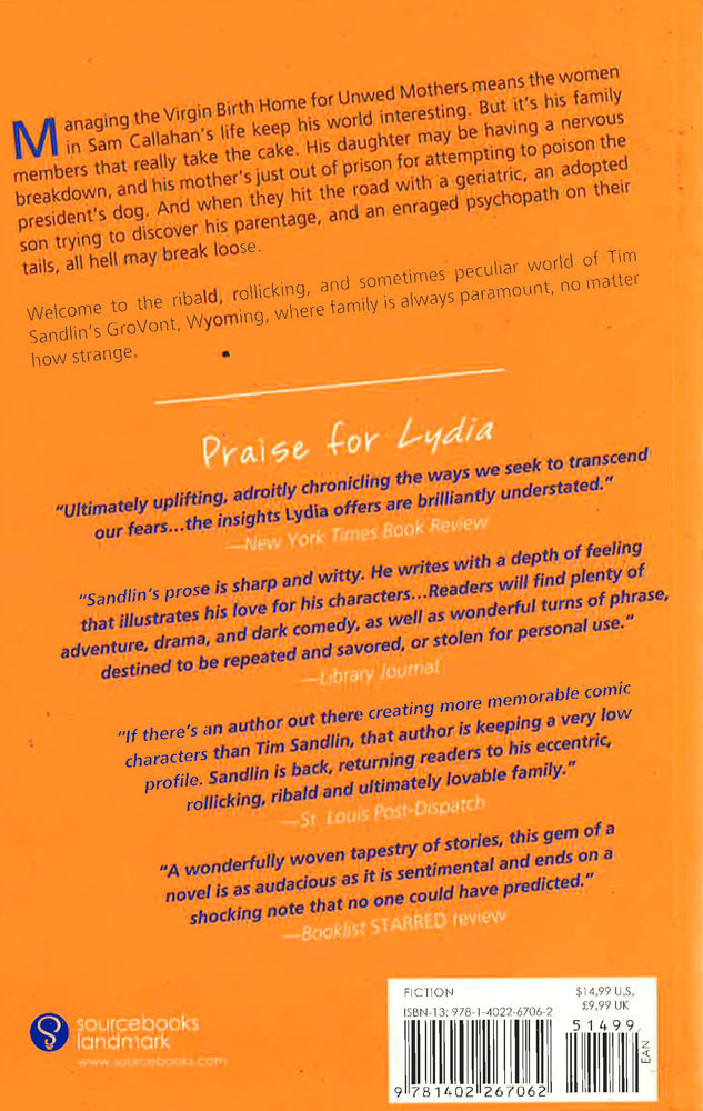 LYDIA, Tim Sandlin's acclaimed return to his GroVont characters, was called "Uplifting...immensely satisfying" by the New York Times Book Review and a "gem of a novel as audacious as it is sentimental" in a starred Booklist review.