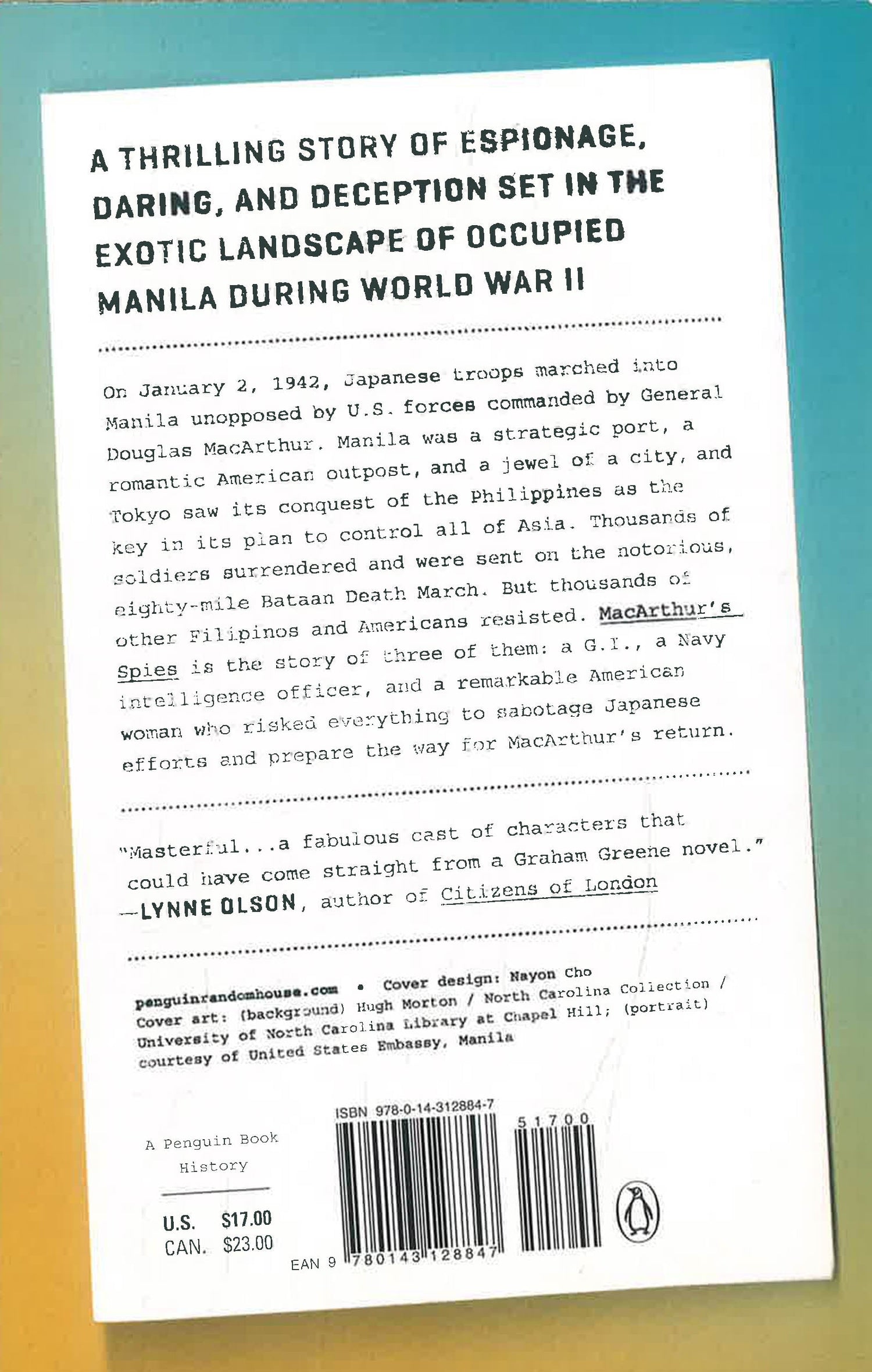 MacArthur's Spies reads like Casablanca set in the Pacific, filled with brave and daring characters caught up in the intrigue of war--and the best part is that it's all true! --Tom Maier, author of Masters of Sex A thrilling story of espionage, daring and deception set in the exotic landscape of occupied Manila during World War II. On January 2, 1942, Japanese troops marched into Manila unopposed by U.S. forces. Manila was a strategic port, a romantic American outpost and a jewel of a city. Tokyo saw its conquest of the Philippines as the key in its plan to control all of Asia, including Australia. Thousands of soldiers surrendered and were sent on the notorious eighty-mile Bataan Death March. But thousands of other Filipinos and Americans refused to surrender and hid in the Luzon hills above Bataan and Manila. MacArthur's Spies is the story of three of them, and how they successfully foiled the Japanese for more than two years, sabotaging Japanese efforts and preparing the way for MacArthur's return.