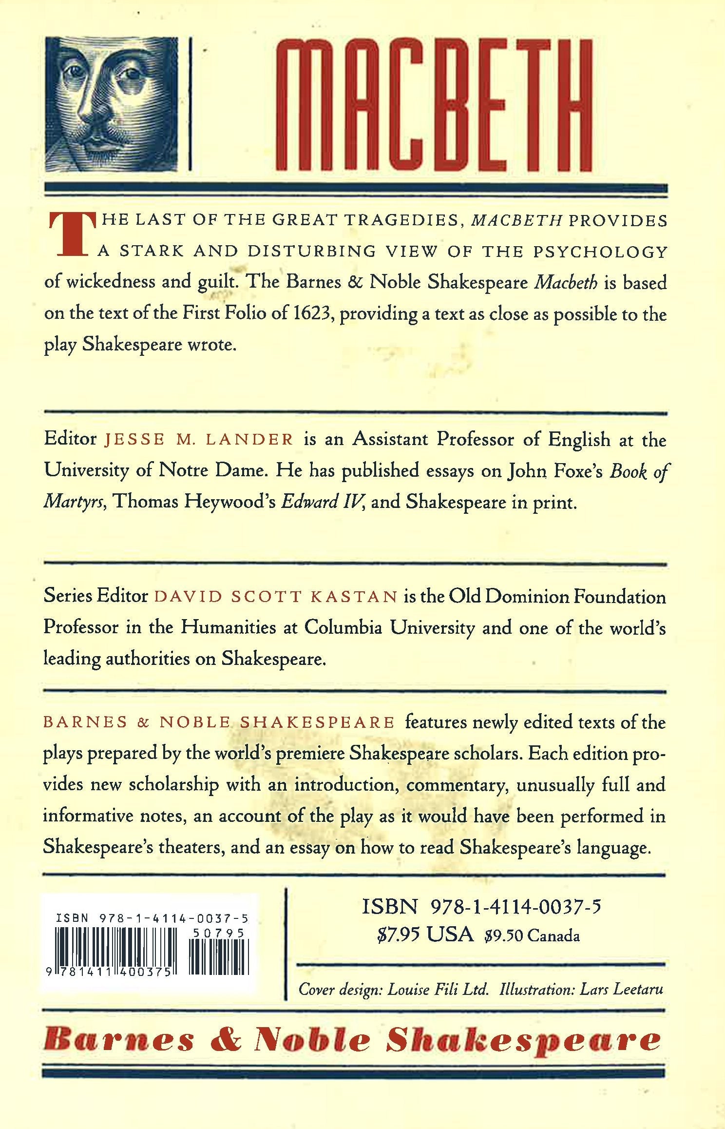 The only Shakespearean tragedy that has a villain as its hero, Macbeth presents a stark and disturbing view of the psychology of wickedness and guilt. Part of the Barnes & Noble Shakespeare series, this features newly edited texts prepared by leading scholars from Great Britain and America, in collaboration with one of the worlds foremost Shakespeare authorities, David Scott Kastan of Columbia University. Together they have produced texts as faithful as possible to those that Shakespeare wrote.