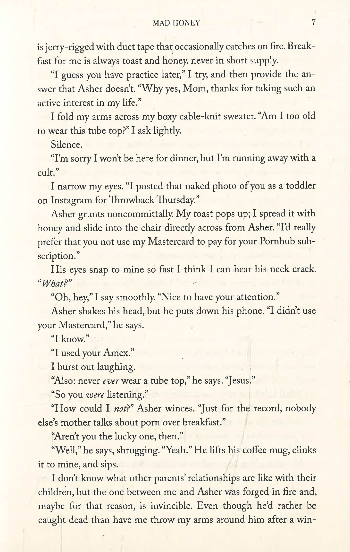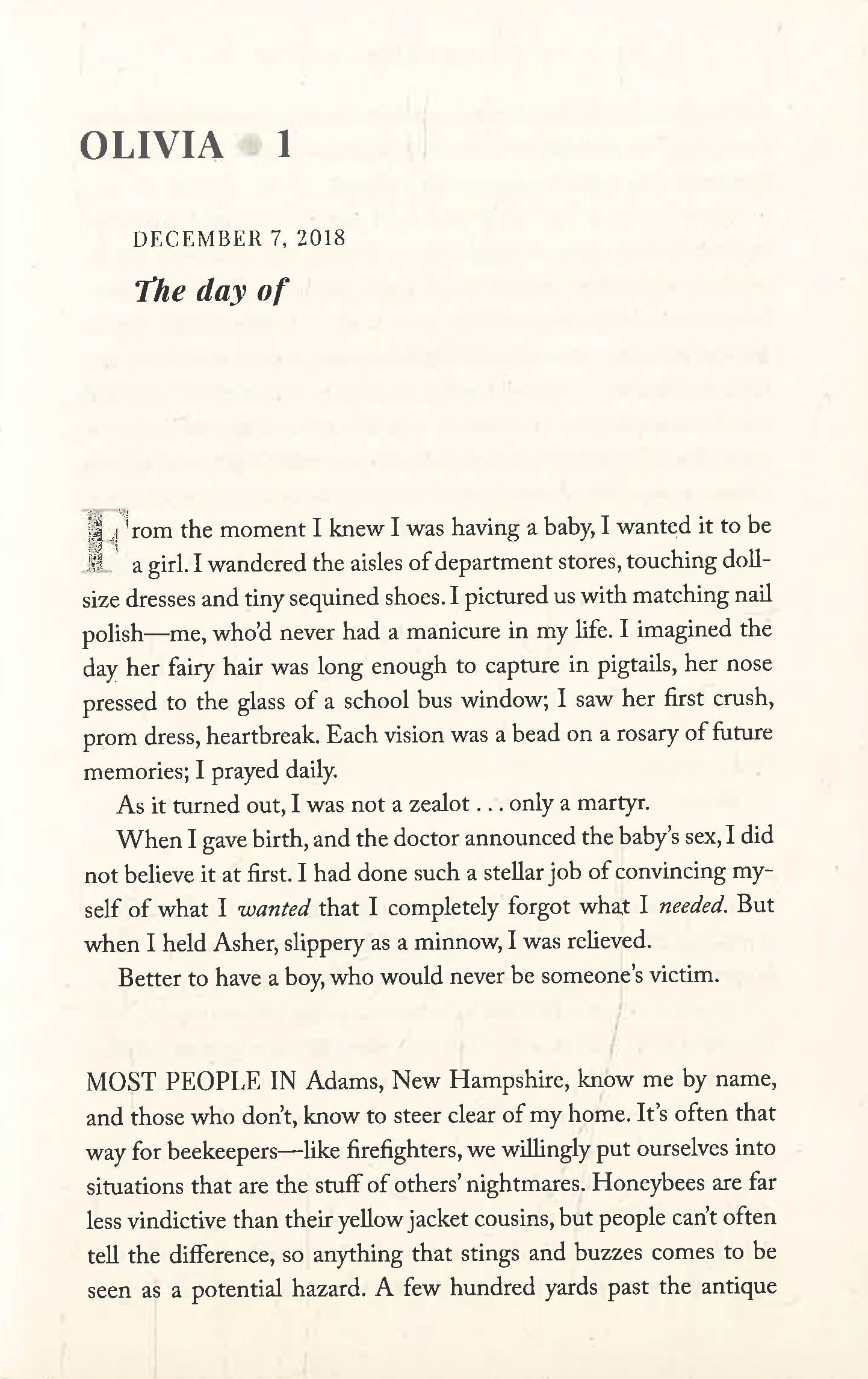 Olivia fled her abusive marriage to return to her hometown and take over the family beekeeping business when her son Asher was six. Now, impossibly, her baby is six feet tall and in his last year of high school, a kind, good-looking, popular ice hockey star with a tiny sprite of a new girlfriend.