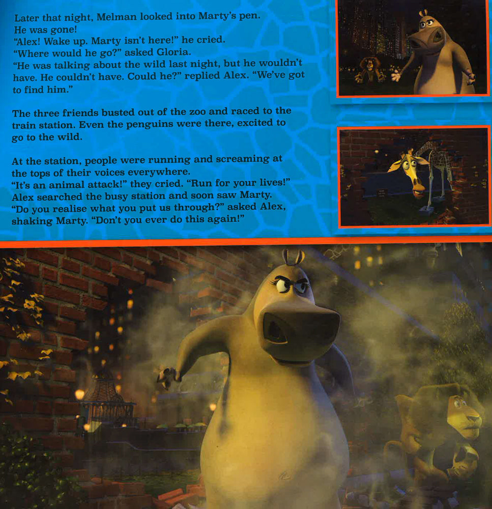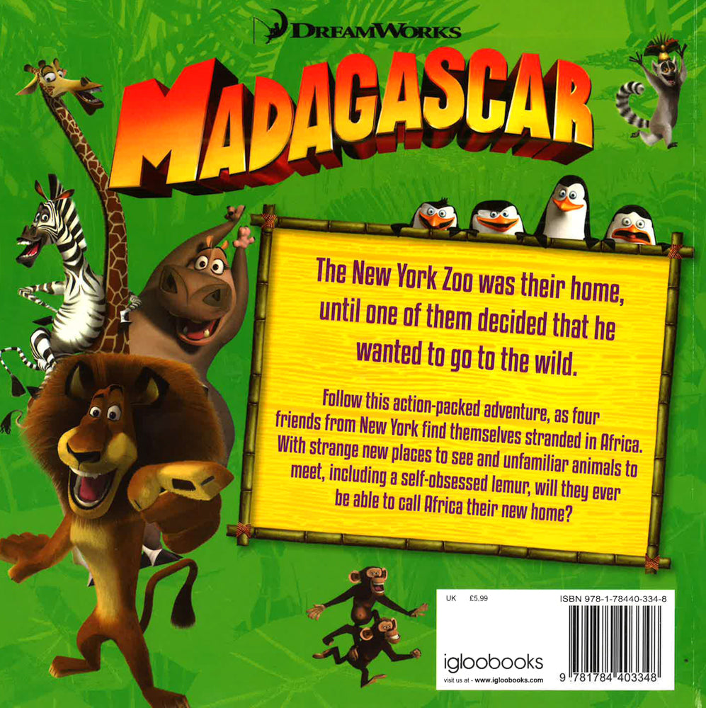 The New York Zoo was their home, unitl one of them decided that he wasnted to go to the wild. Follow this action-packed adventure, as four friends from New York find themselves stranded in Africa. With strange new places to see and unfamiliar animals to meet, including a self-obsessed lemur, will they ever ba able to call Afirca their new home?