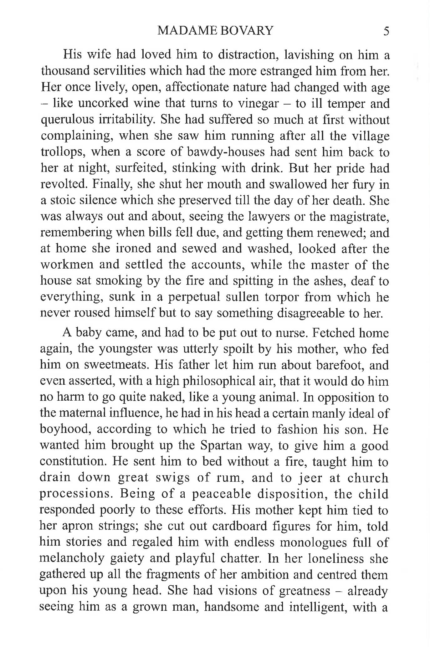 'Oh, why, dear God, did I marry him?' Flaubert's heroine, Emma, is a bored provincial housewife who abandons her husband to pursue the libertine Rodolphe in a desperate love affair. Flaubert published published MADAME BOVARY in 1857. The book created a sensation when Flaubert was prosecuted for offending public morals and later acquitted.