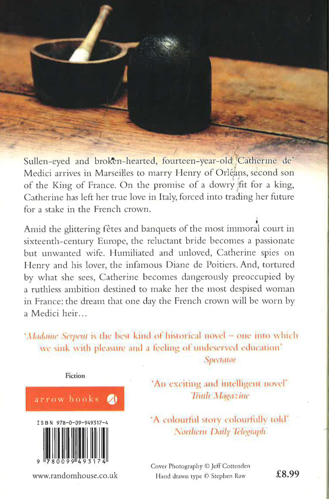 Amid the glittering fetes and banquets of the most immoral court in sixteenth-century Europe, the reluctant bride becomes a passionate but unwanted wife. Humiliated and unloved, Catherine spies on Henry and his lover, the infamous Diane de Poitiers. And, tortured by what she sees, Catherine becomes dangerously occupied by a ruthless ambition destined to make her the most despised woman in France: the dream that one day the French crown will be worn be a Medici heir...