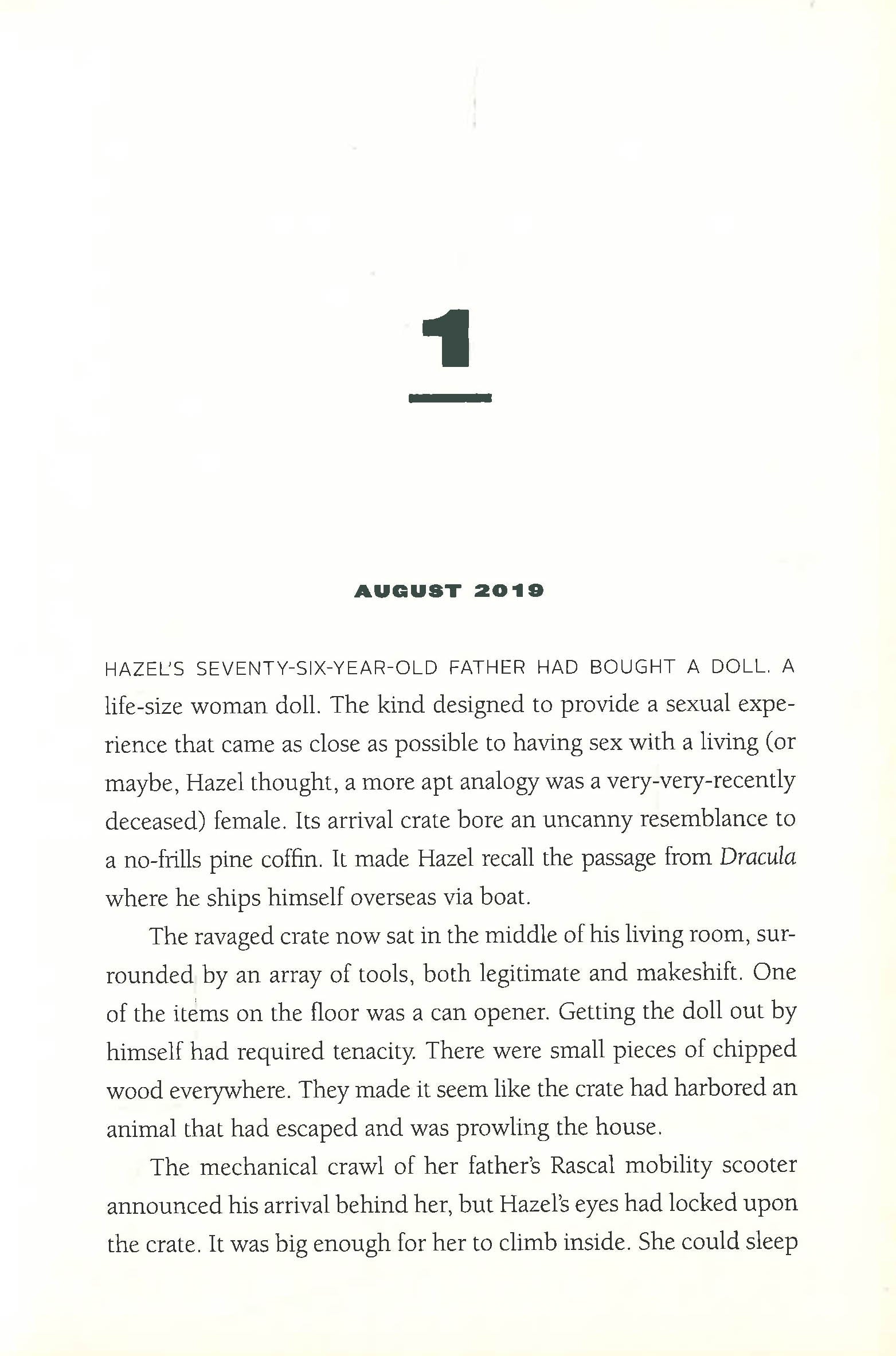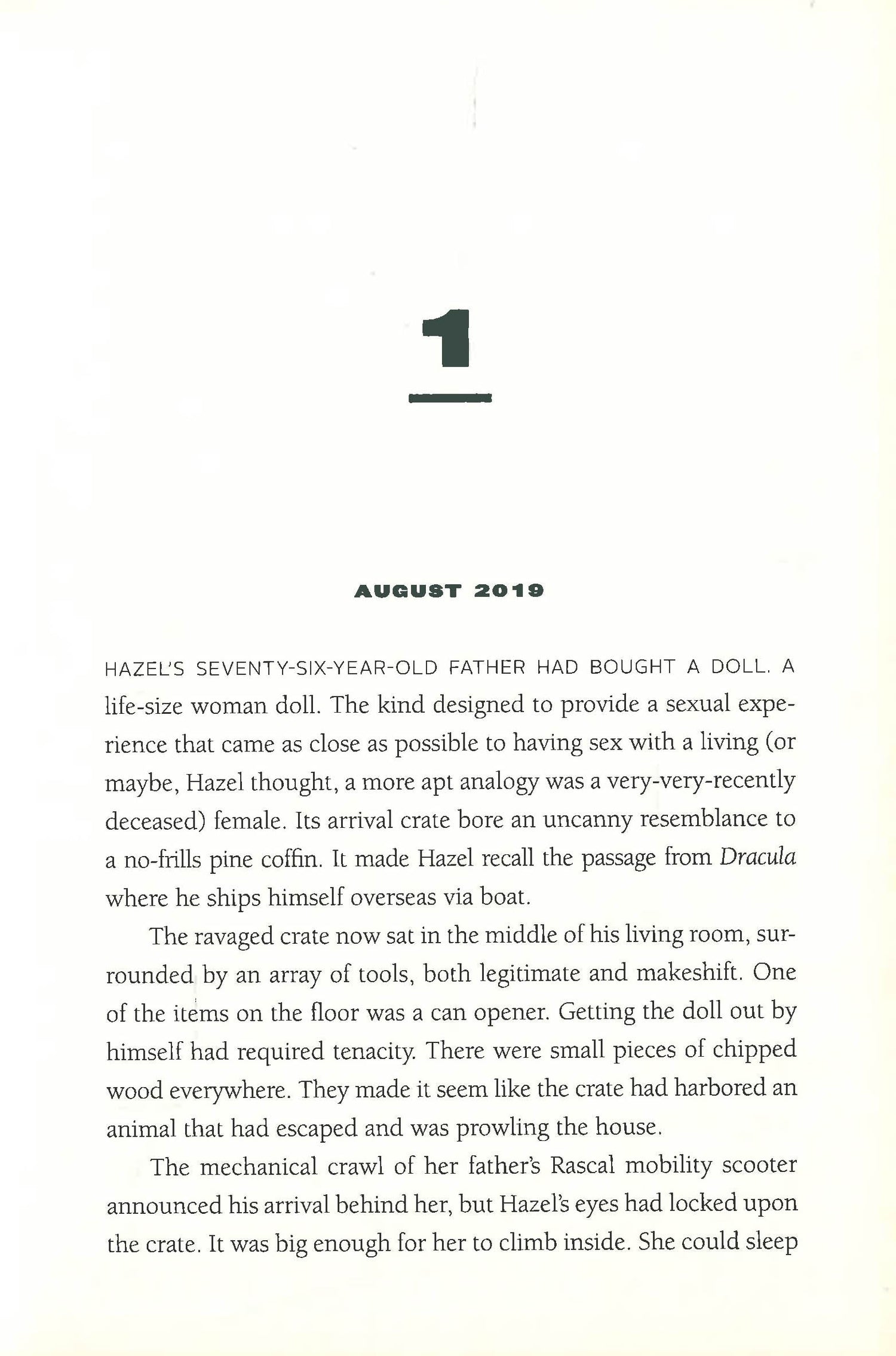 Hazel has just moved into a trailer park of senior citizens, with her father and Diane--his extremely lifelike sex doll--as her roommates. Life with Hazel's father is strained at best, but her only alternative seems even bleaker. She's just run out on her marriage to Byron Gogol, CEO and founder of Gogol Industries, a monolithic corporation hell-bent on making its products and technologies indispensable in daily life. For over a decade, Hazel put up with being veritably quarantined by Byron in the family compound, her every movement and vital sign tracked. But when he demands to wirelessly connect the two of them via brain chips in a first-ever human "mind-meld," Hazel decides what was once merely irritating has become unbearable. The world she escapes into is a far cry from the dry and clinical bubble she's been living in, a world populated with a whole host of deviant oddballs.