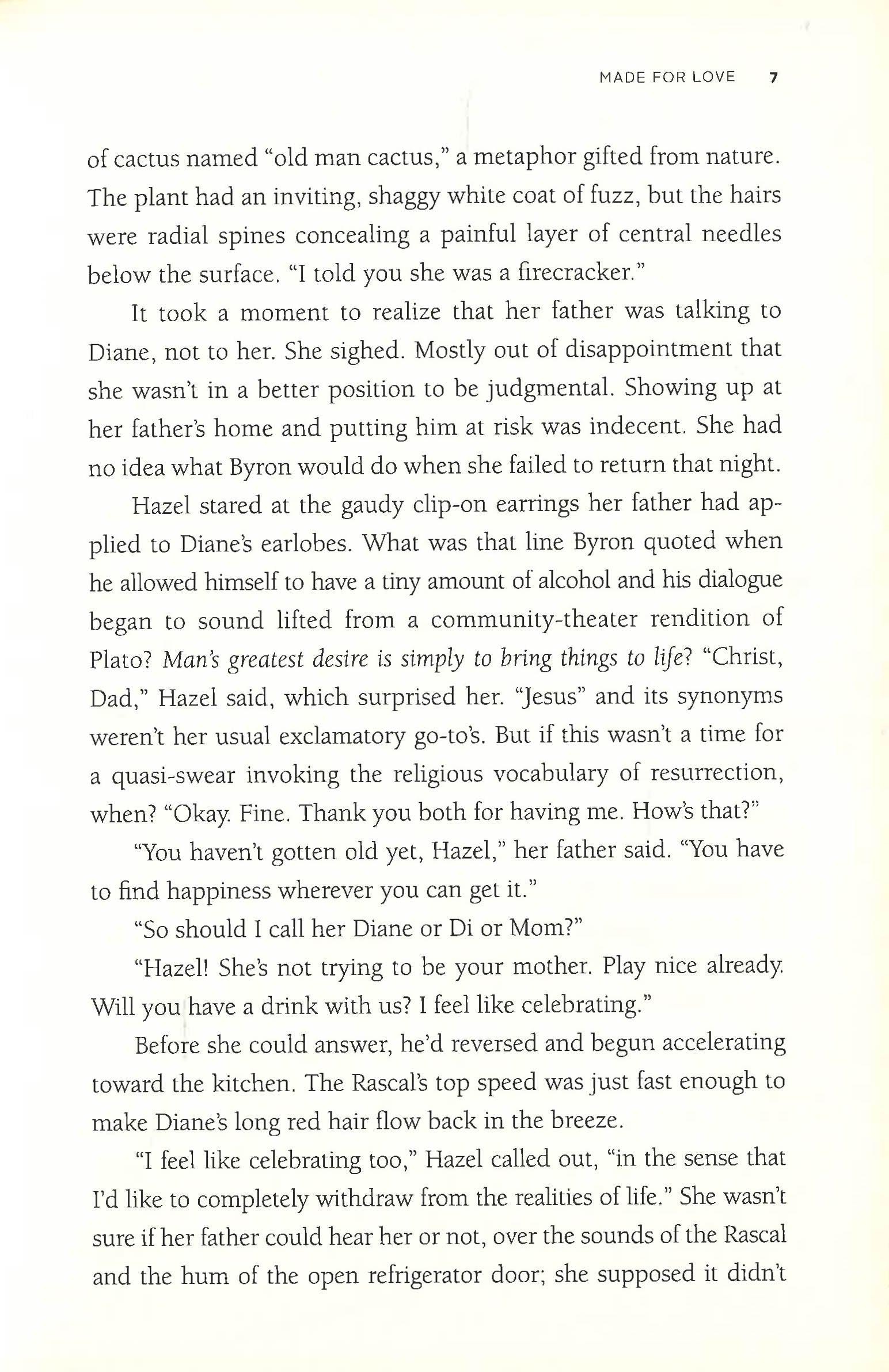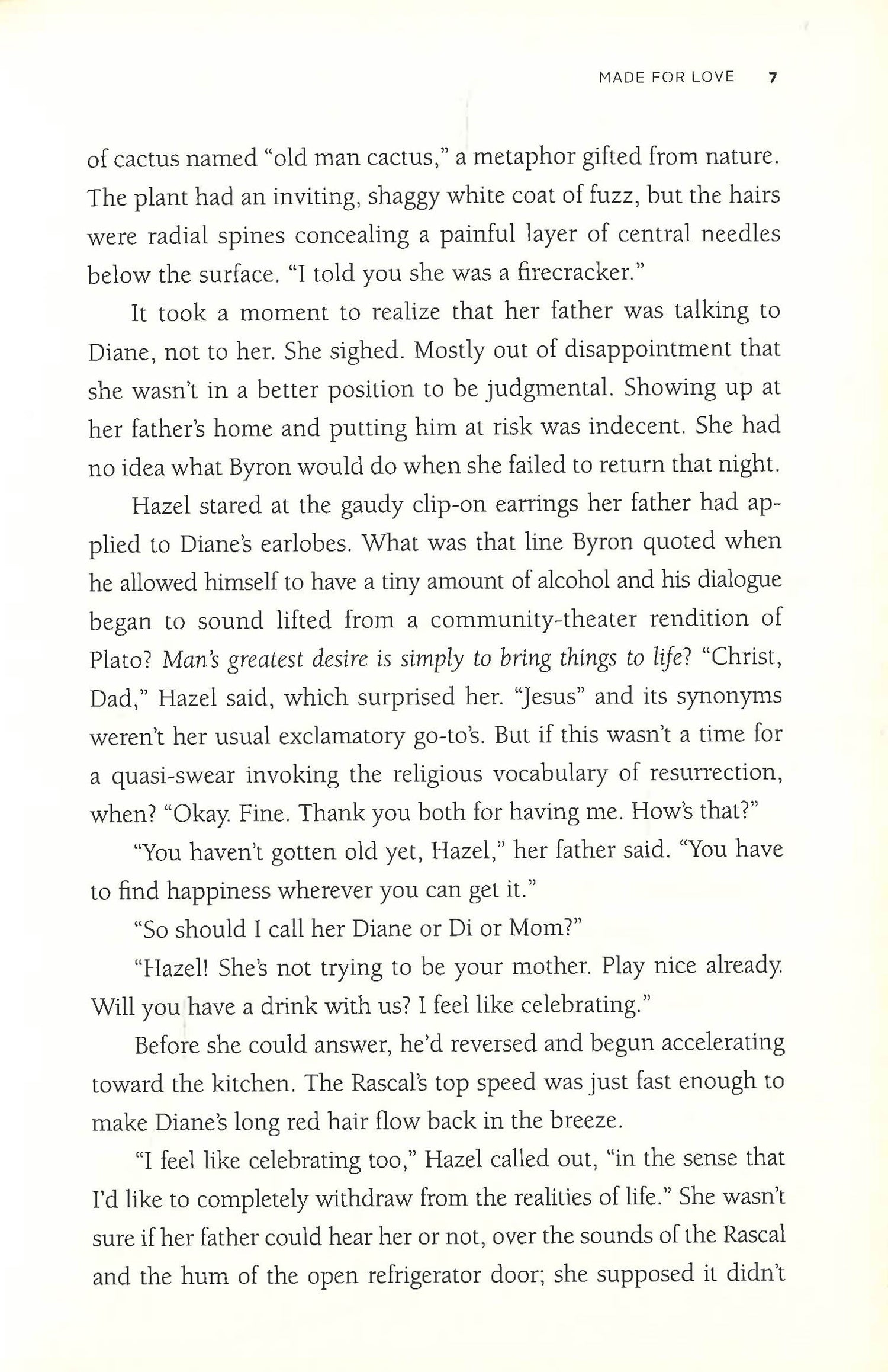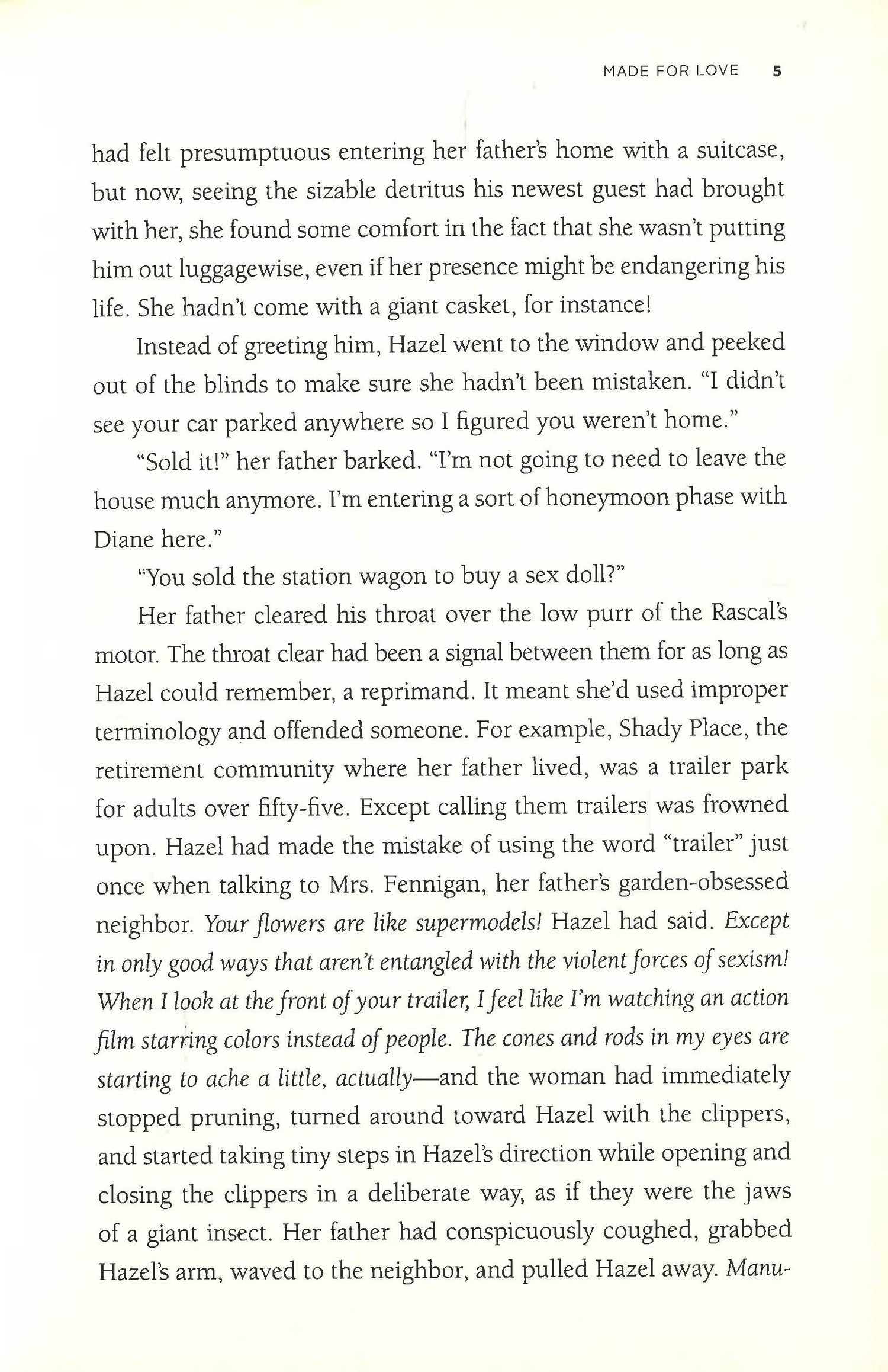 As Hazel tries to carve out a new life for herself in this uncharted territory, Byron is using the most sophisticated tools at his disposal to find her and bring her home. His threats become more and more sinister, and Hazel is forced to take drastic measures in order to find a home of her own and free herself from Byron's virtual clutches once and for all. Perceptive and compulsively readable, Made for Love is at once an absurd, raunchy comedy and a dazzling, profound meditation marriage, monogamy, and family.