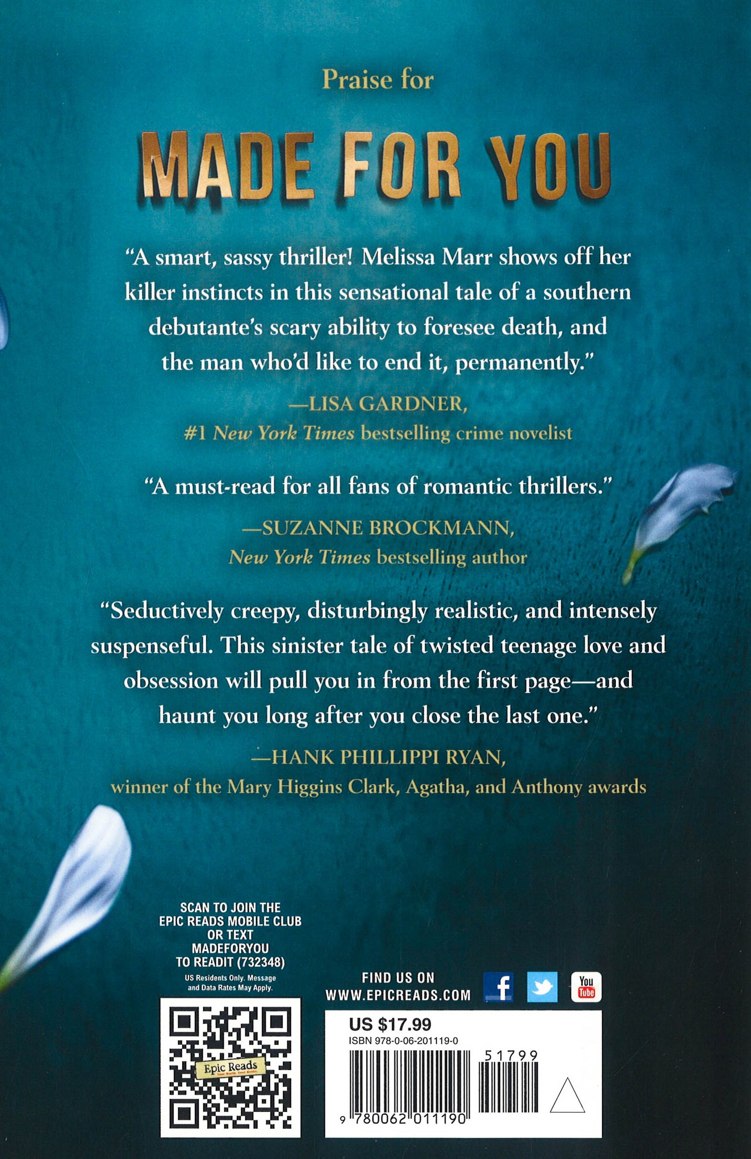 When Eva Tilling wakes up in the hospital, she's confused--who in her sleepy little North Carolina town could have hit her with their car? And why? It seems impossible that anyone would have it out for the town darling. Thanks to her family's distinguished history and her own unassailable reputation in old-money Jessup, Eva is universally liked. But she has little time to consider the question when she finds that she's awoken with a strange new skill: the ability to foresee people's deaths when they touch her. Eva is struggling to understand just what these visions mean when a slew of murders takes place back home. The victims, all classmates, are discovered alongside eerie messages that tie the incidents to her. There is a killer on the loose, and he is after Eva. While she is recovering from the hit-and-run, Nate, an old friend, reappears. The two traverse their rocky past as they figure out how to use Eva's power to keep her friends--and themselves--alive. But while Eva and Nate grow closer, the determined killer grows increasingly frantic in his attempt to get to Eva. Chilling twists, unrequited obsession, and high-stakes romance drive Melissa Marr's racy thriller--a story of small-town oppression and salvation.