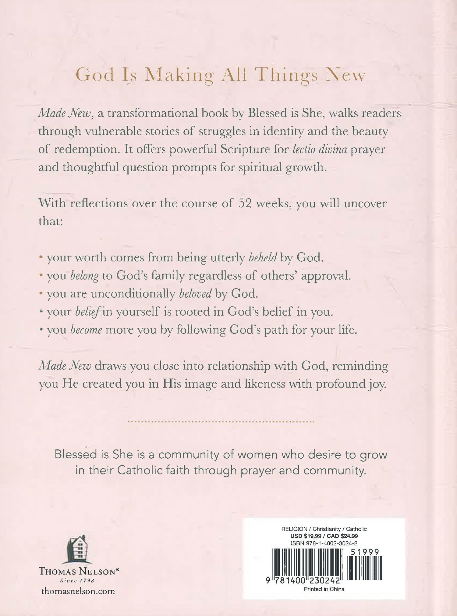 Made New, by the creators of Blessed Is She, a popular Catholic online community for women, walks with rich reflections through the Gospels, substantive Scripture for prayer through Lectio Divina, and prompts for spiritual growth. Over the course of 52 weeks, you'll uncover: