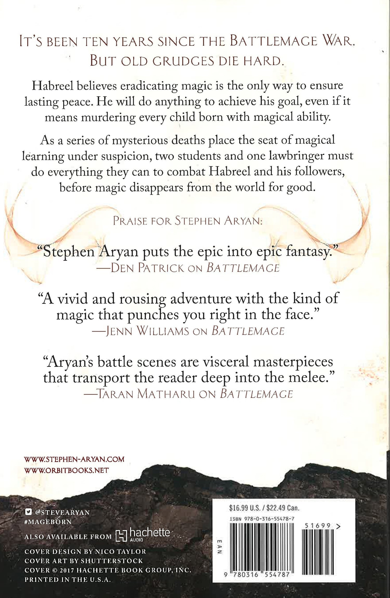 Fear of magic may spark the next world war in the new fantasy series from Stephen Aryan, set in the same world as Battlemage. Habreel believes eradicating magic is the only way to ensure lasting peace. He will do anything to achieve his goal, even if it means murdering every child born with magical ability. As a series of mysterious deaths place the seat of magical learning under suspicion, two students and one lawbringer must do everything they can to combat Habreel and his followers, before magic disappears from the world for good. The Age of DreadMageborn For more from Stephen Aryan, check out: Age of Darkness Battlemage Bloodmage Chaosmage