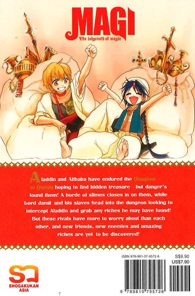 Aladdin and Alibaba have endured the Dungeon of Qishan hoping to find hidden treasure – but danger’s found them! A horde of slimes closes in on them, while Lord Jamil and his slaves head into the dungeon looking to intercept Aladdin and grab any riches he may have found! But these rivals have more to worry about than each other, and new friends, new enemies and amazing riches are yet to be discovered! ISBN: 9789810795726