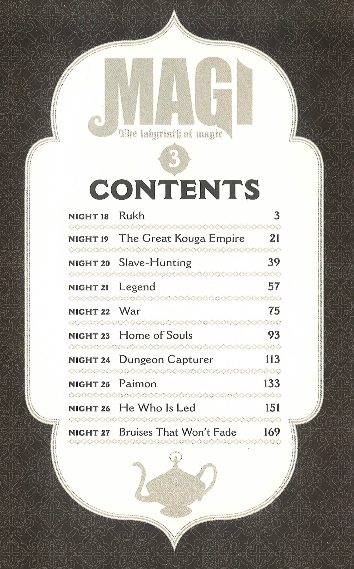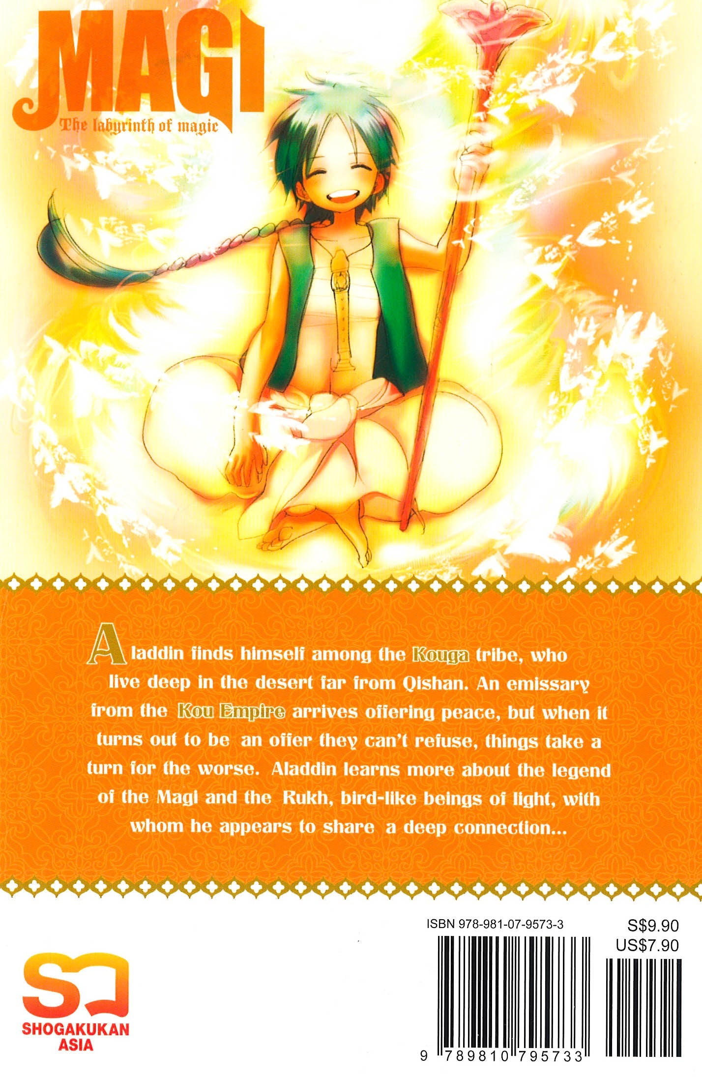 Aladdin finds himself among the Kouga tribe, who live deep in the desert far from Qishan. An emissary from the Kou Empire arrives offering peace, but when it turns out to be an offer they can’t refuse, things take a turn for the worse. Aladdin learns more about the legend of the Magi and the Rukh, bird-like beings of light, with whom he appears to share a deep connection.