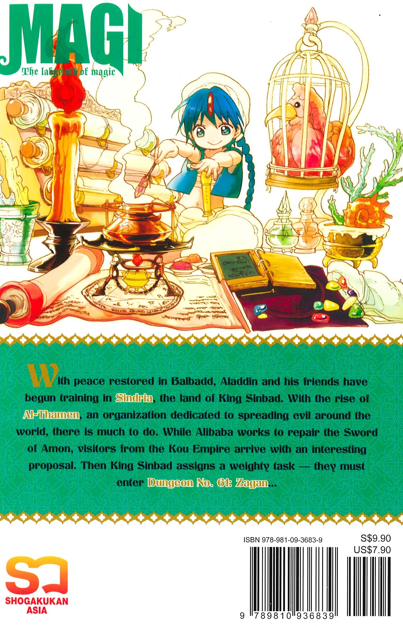With peace restored in Balbadd, Aladdin and his friends have begun training in Sindria, the land of King Sinbad. With the rise of Al-Thamen, an organization dedicated to spreading evil around the world, there is much to do. While Alibaba works to repair the Sword of Amon, visitors from the Kou Empire arrive with an interesting proposal. Then King Sinbad assigns a weighty task – they must enter Dungeon No. 61: Zagan…