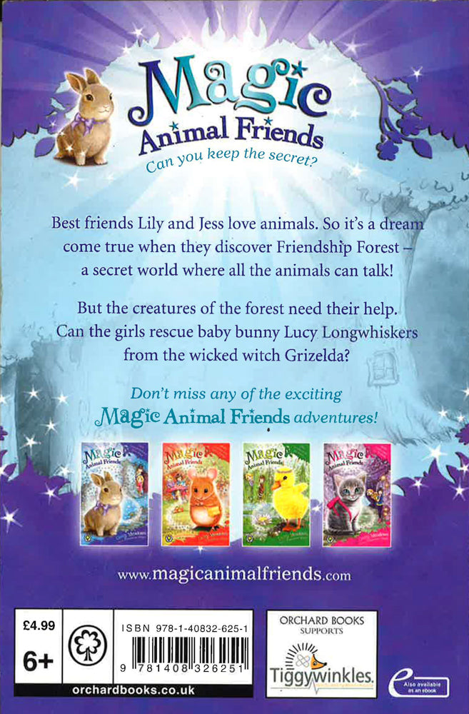 An enchanting new series full of adorable animals, magic and friendship - from the creator of RAINBOW MAGIC Welcome to a magical world where animals talk and play - just like you and me!Best friends Jess and Lily love all animals. But when they follow a mysterious golden cat into Friendship Forest - a place where animals live in tiny cottages and sip dandelion tea at the Toadstool Cafe - their summer holidays suddenly become much more magical!On their first adventure in Friendship Forest, can the two friends rescue adorable baby bunny Lucy Longwhiskers from the wicked witch Grizelda?