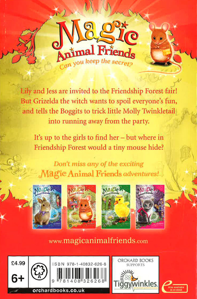 Welcome to a magical world where animals talk and play - just like you and me!Best friends Jess and Lily love all animals. But when they follow a mysterious golden cat into Friendship Forest - a place where animals live in tiny cottages and sip dandelion tea at the Toadstool Cafe - their summer holidays suddenly become much more magical!On their second adventure, Lily and Jess are invited to the Friendship Forest fair! But Grizelda the witch wants to spoil everyone's fun and her servants, the Boggits, trick little Molly Twinkletail into running away from the party. It's up to the girls to find her - but where in Friendship Forest would a tiny mouse hide?