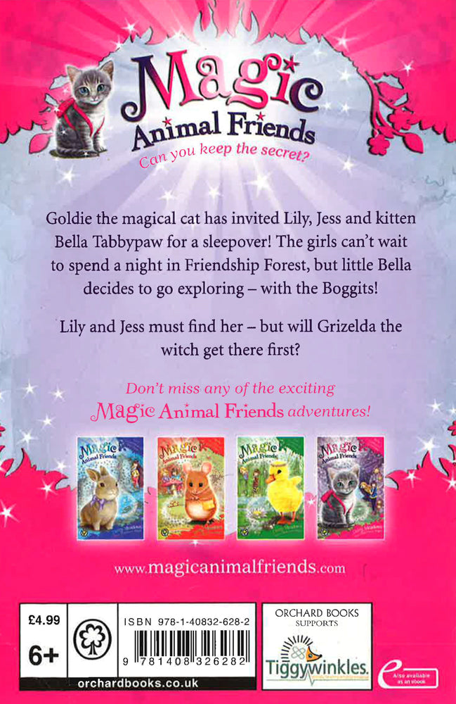 An enchanting new series full of adorable animals, magic and friendship - from the creator of RAINBOW MAGIC Welcome to a magical world where animals talk and play - just like you and me!Best friends Jess and Lily love all animals. But when they follow a mysterious golden cat into Friendship Forest - a place where animals live in tiny cottages and sip dandelion tea at the Toadstool Cafe - their summer holidays suddenly become much more magical! Goldie has invited Lily, Jess and kitten Bella Tabbypaw for a sleepover! The girls can't wait to spend a night in Friendship Forest, but brave little Bella decides to go exploring on her own - with the Boggits! Lily and Jess must head into the tunnels underneath the forest to find her, but will Grizelda the witch get there first?