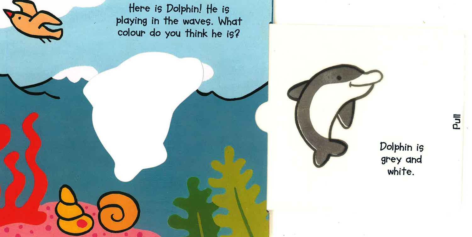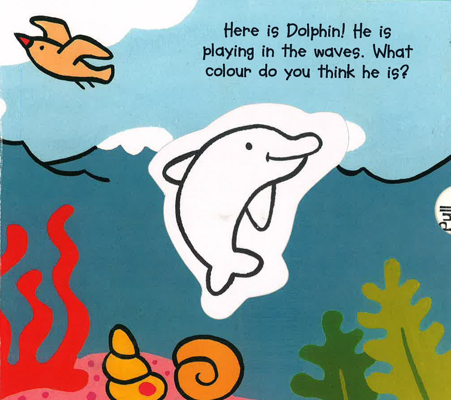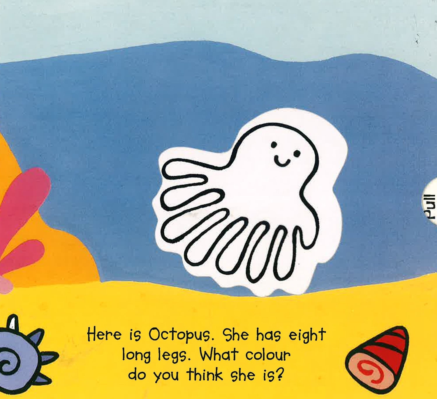 Go underwater to meet some super sea creatures: a stingray, an octopus, a dolphin, an angelfish and a shark. Pull the tab to see the colour of each sea creature magically appear.