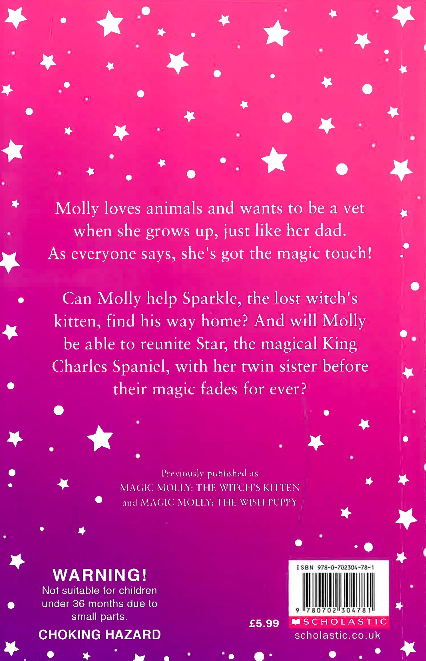 A truly magical animal series from bestselling author, Holly Webb - now with a gorgeous sequinned cover that transforms into the cutest cat and a precious puppy! Molly loves animals and wants to be a vet when she grows up just like her dad - as everyone says; she's got the magic touch. But Molly's talent is quite unique - she can talk to them! Previously published as Magic Molly: The Witch's Kitten and Magic Molly: The Wish Puppy. The Wish Puppy No one knows why Star, the King Charles Spaniel, is so unhappy. That is until Molly realises she's been separated from her twin sister. Can Molly find Star's twin before their magic disappears forever? The Witch's Kitten Sparkle, the grey kitten, is lost and he needs Molly's help to get back home. But that means going into the spooky wood ... and to the witch's cottage!