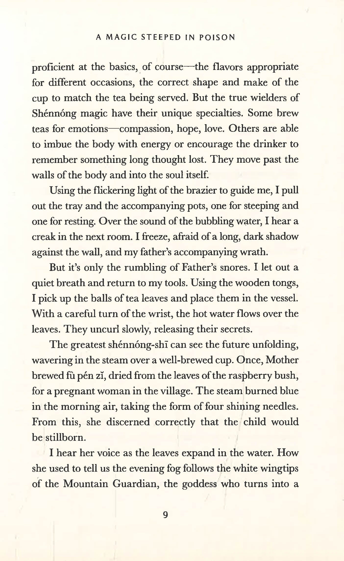 When Ning hears of a competition to find the kingdom's greatest shennong-shi - masters of the ancient and magical art of tea-making - she travels to the imperial city to compete. The winner will receive a favor from the princess, which may be Ning's only chance to save her sister's life.
