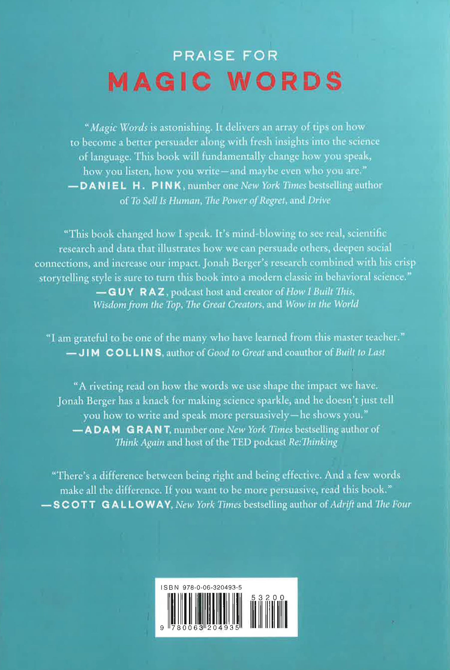 In Magic Words, internationally bestselling author Jonah Berger gives you an inside look at the new science of language and how you can use it. Technological advances in machine learning, computational linguistics, and natural language processing, combined with the digitization of everything from cover letters to conversations, have yielded unprecedented insights.