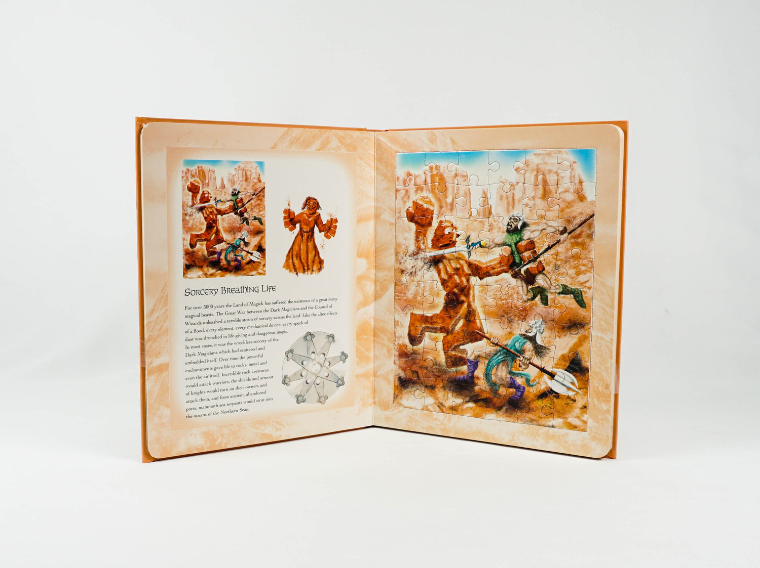Meet a motley bunch of magical beasts of all shapes, sizes and powers, from Tin Pot Man and the beast of Fire and Ice, to Rock Man and Butterfly Demon, in the latest in the series of bestselling jigsaw books. You can piece together the illustrations of fantastical and wild imaginings and then read the accompanying story of adventure in their magical world. (Age Range 4-12)