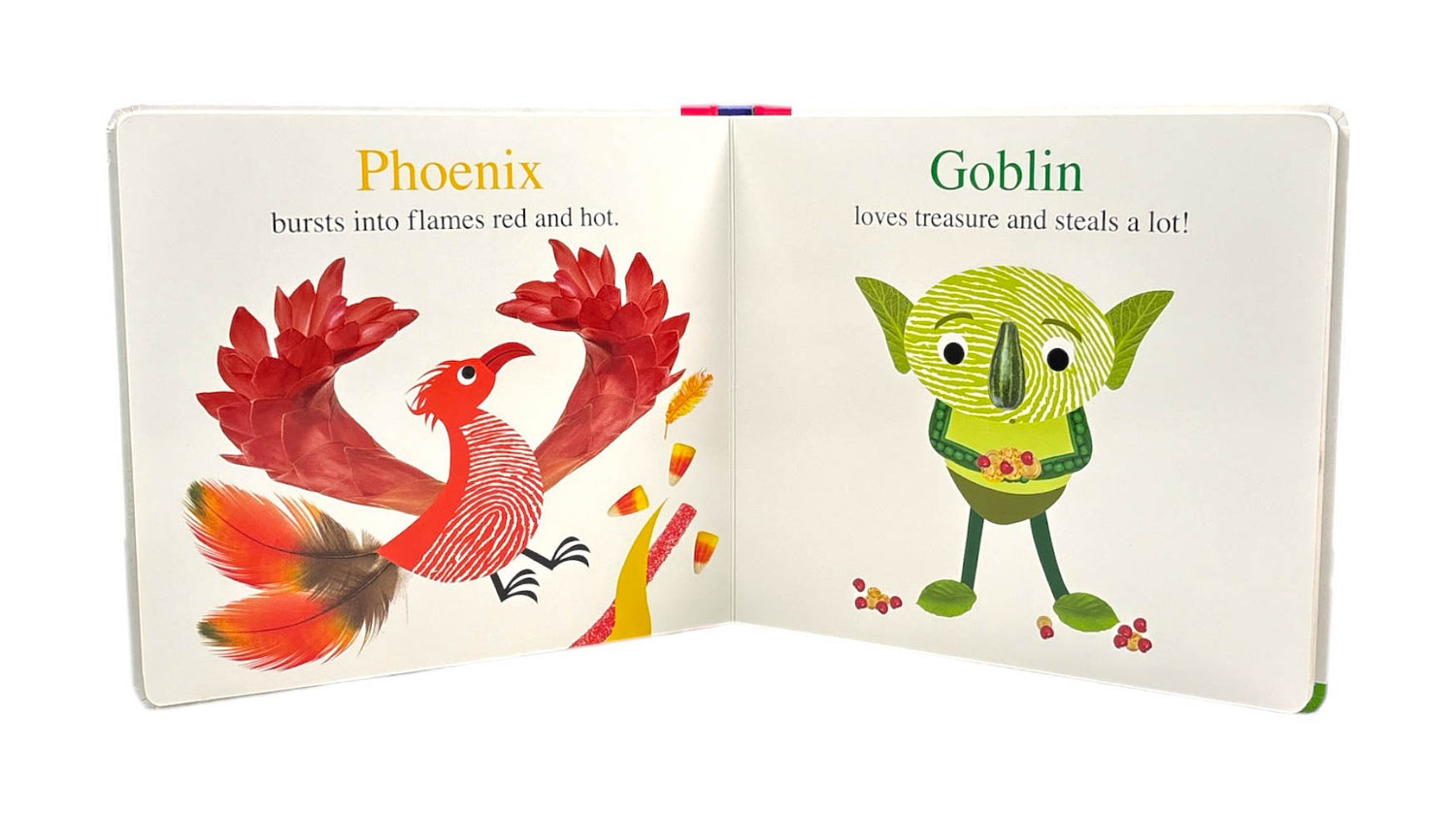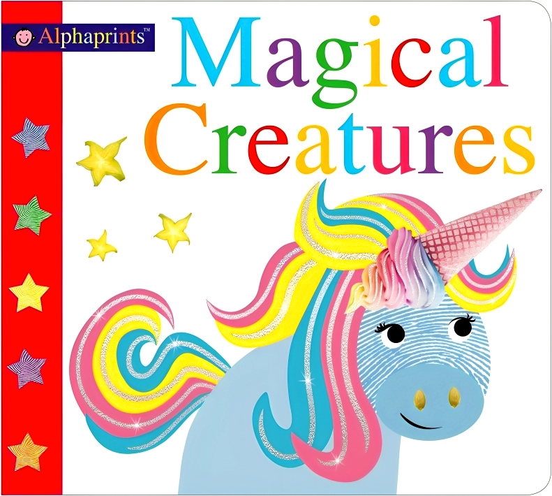 Alphaprints Magical Creatures is an Alphaprints board book with a sparkly cover and embossing throughout. Young children will love to discover the fantasy creatures, with a lighthearted rhyming couplet that tells you something about each of them. An engaging and interesting book for children and adults alike.