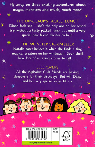 Nobody writes about best friends like Jacqueline Wilson. She’s the queen of friendship fiction. But all these friends are a little bit… different. Magical, you might say. Some are green monsters with snazzy pointed tails. Some are dinosaurs. And some are ordinary girls with a magical talent for being the best mates in the world. Celebrate friendship in this bumper triple decker, which contains three of Jacky’s best books ever. The Dinosaur’s Packed Lunch, The Monster Story-teller and Sleepovers. One for besties everywhere, human or otherwise!
