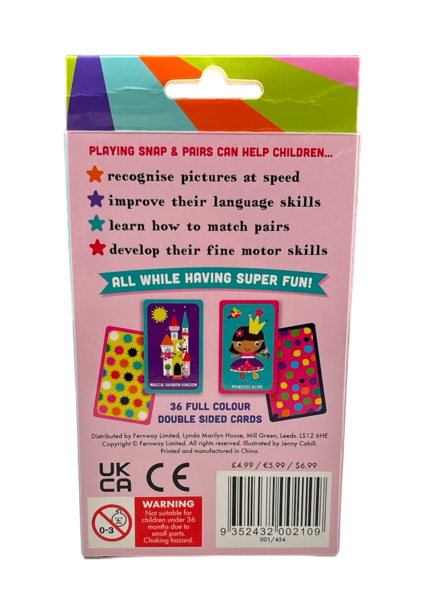 This double-play card set combines the classic game of Snap with a Pairs memory game. Simple to play, just spot the Snaps or match the Pairs to win! Ideal for day to day play or taking on holiday, this pocket pack is an engaging and fun-filled way for children to enhance their memory and observation skills.