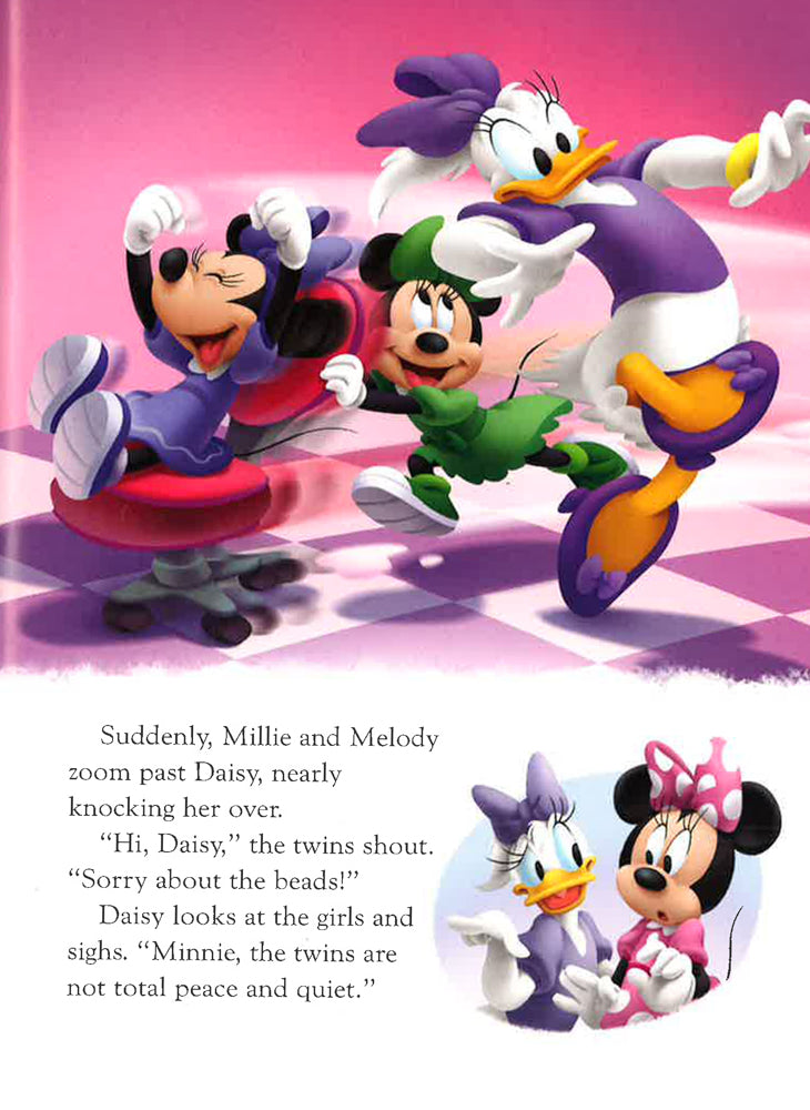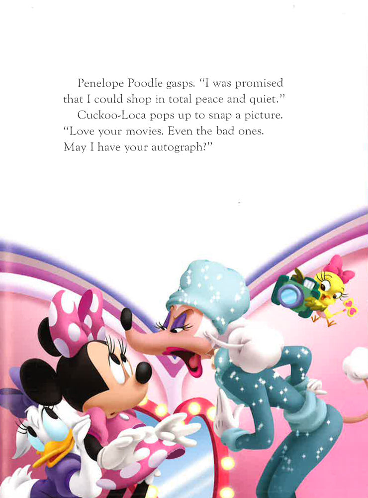 Famous movie star, Penelope Poodle, has come to Minnie's Bow-tique for the perfect outfit. But Minnie's mischievous twin nieces, Millie and Melody, are visiting, too. Will Minnie be able to create a fabulous outfit in the chaos?