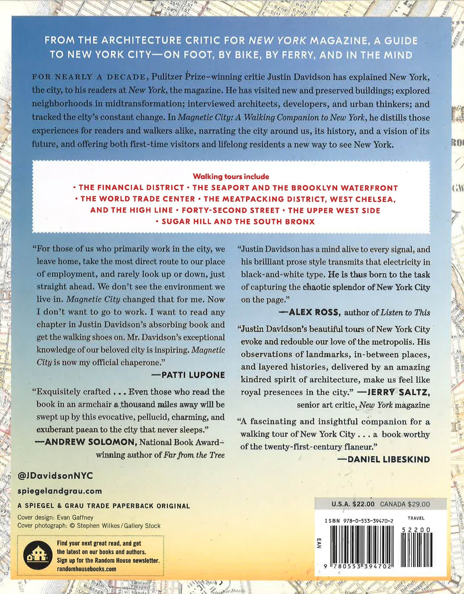 From New York magazine's architecture critic, a walking and reading guide to New York City--a historical, cultural, architectural, and personal approach to seven neighborhoods throughout Manhattan, Brooklyn, and the Bronx, including six essays that help us understand the evolution of the city For nearly a decade, Pulitzer Prize-winning critic Justin Davidson has explained the ever-changing city of New York to his readers at New York magazine, introducing new buildings, interviewing architects, tracking the way the transforming urban landscape shapes who New Yorkers are. Now, his extensive, inspiring knowledge will be available to a wide audience. An insider's guide to the architecture and planning of New York that includes maps, photographs, and original insights from the men and women who built the city and lived in it--its designers, visionaries, artists, writers--Magnetic City offers first-time visitors and lifelong residents a new way to see New York. Includes walking tours throughout Manhattan, Brooklyn, and the Bronx