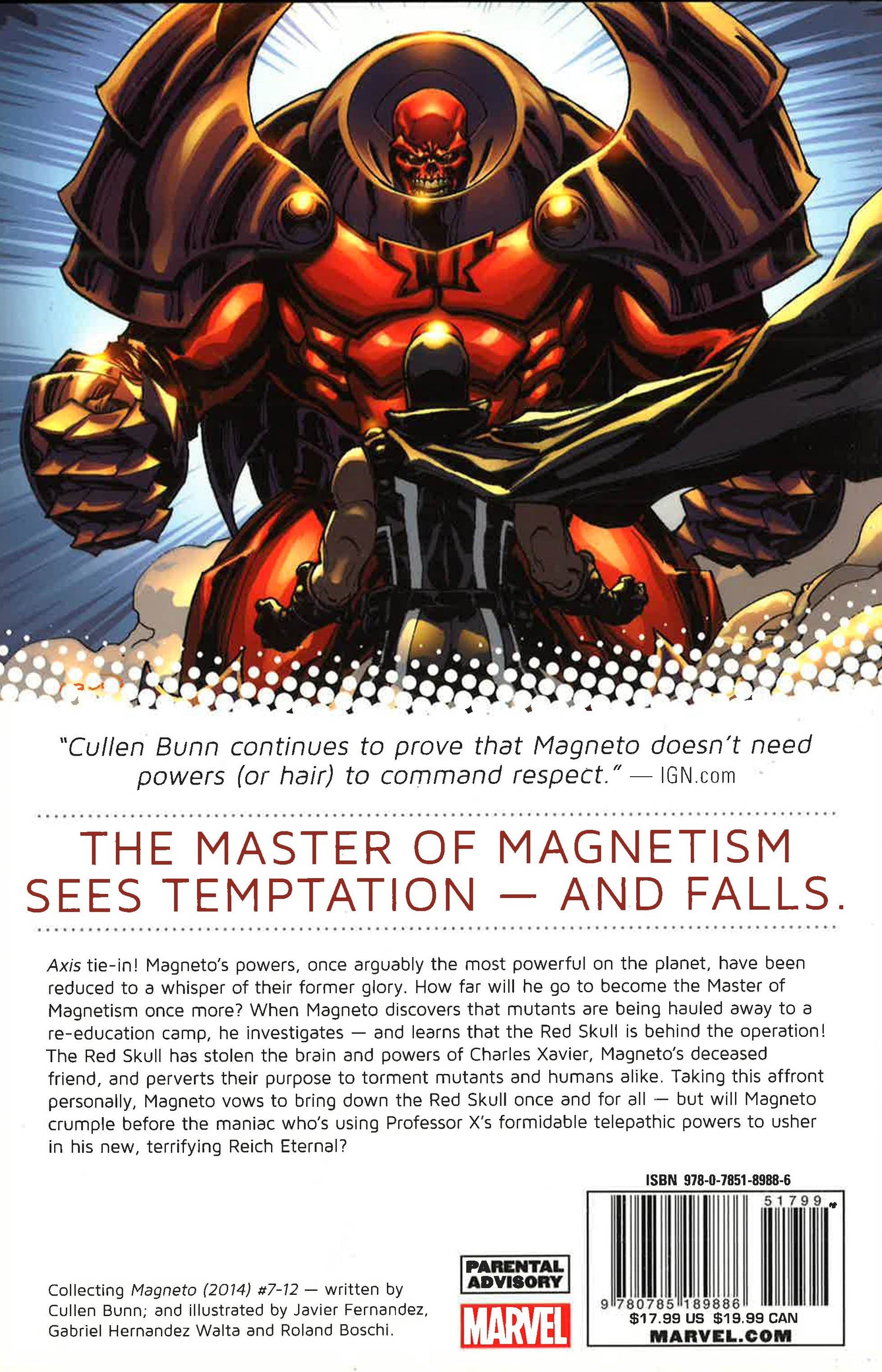 AXIS tie-in! Magneto was once arguably the most powerful mutant on the planet. But recently, his powers have been reduced to a whisper of what they once were. How far will he go to become the Master of Magnetism once more? When Magneto discovers that mutants are being hauled away to a re-education camp, he investigates...and discovers that the Red Skull is behind the operation! And worse, the villain possesses the brain and powers of Magneto's deceased friend, Charles Xavier! Taking this affront personally on many levels, Magneto vows to take down the Red Skull once and for all - but as the Skull sends the world into a spiral of destruction, will Magneto crumple before the maniac? COLLECTING: Magneto 7-12