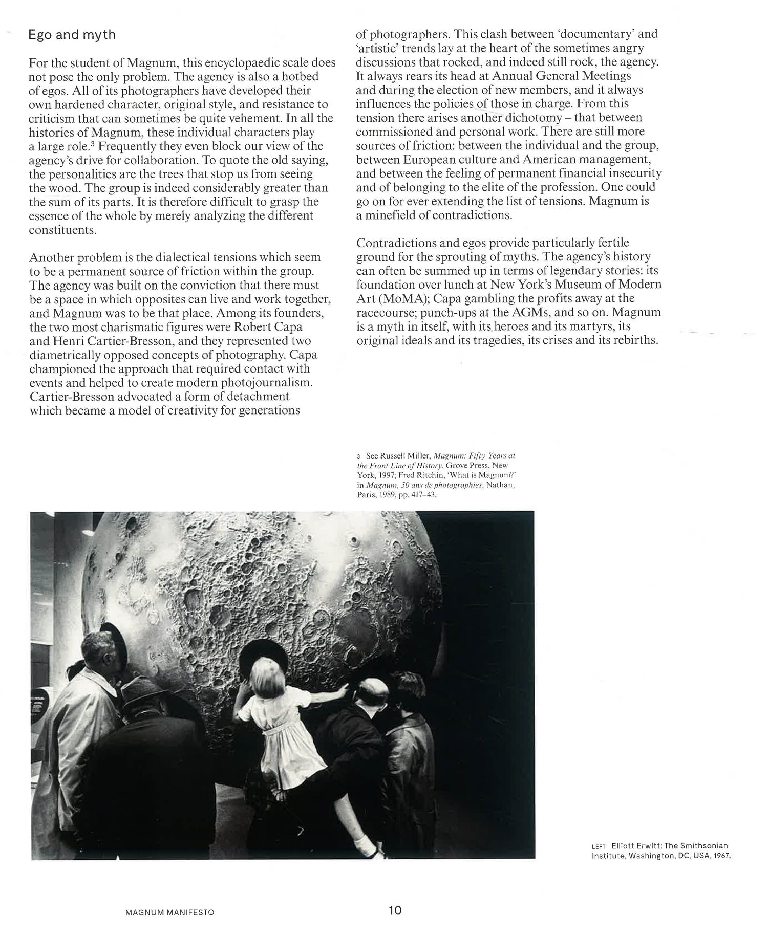 In this landmark photography publication and accompanying exhibition, Clement Cheroux demonstrates how Magnum Photos owes its pre-eminence to the ability of its photographers to encompass and navigate the points between photography as art object and photography as documentary evidence. A Magnum photograph can be expressive and bear witness at the same time. Magnum Manifesto is organized into three main parts: Part 1 (1947-1968) views the Magnum archive through a humanist lens, focusing on post-war ideals of commonality and utopianism. Part 2 (1969-1989) shows a world fragmenting, with a focus on subcultures, minorities and outsiders. Part 3 (1990-present day) charts the ways in which Magnum photographers have captured - and continue to capture - a world in flux and under threat. Featuring both group and individual projects, the book includes contact sheets, notebooks, magazine spreads and other previously unseen material to accompany the photographs. Complete with extensive texts by Clement Cheroux and photographic historian Clara Bouveresse, Magnum Manifesto is an essential purchase for anyone seeking to understand the very best in photography.