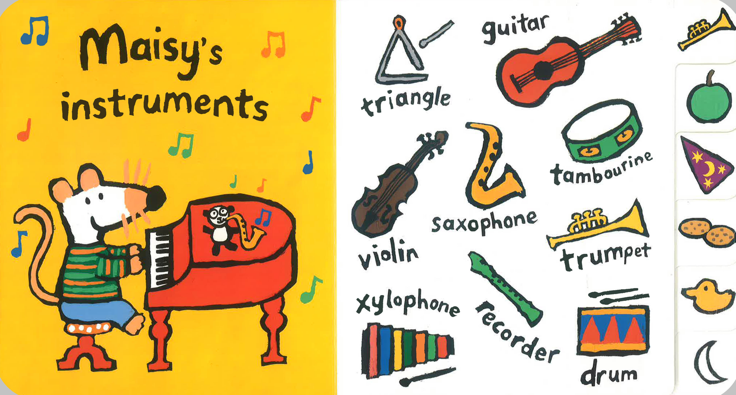 It's time to learn with Maisy! This brilliant book is full of first words and bright pictures, with colourful tabs to help little hands turn the pages!