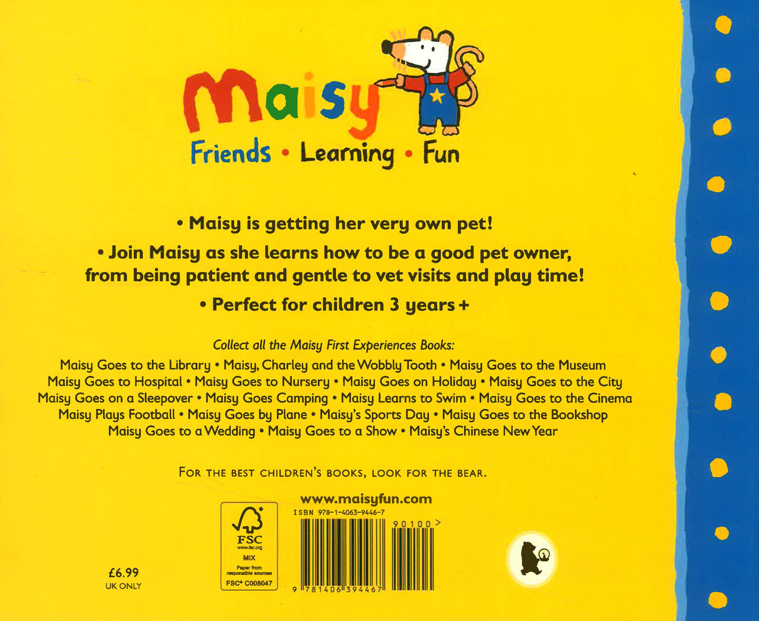 Maisy is getting a pet! Join her as she chooses the perfect kitten and takes it home to look after. This bright and humorous story is ideal for teaching little ones about responsible pet ownership.