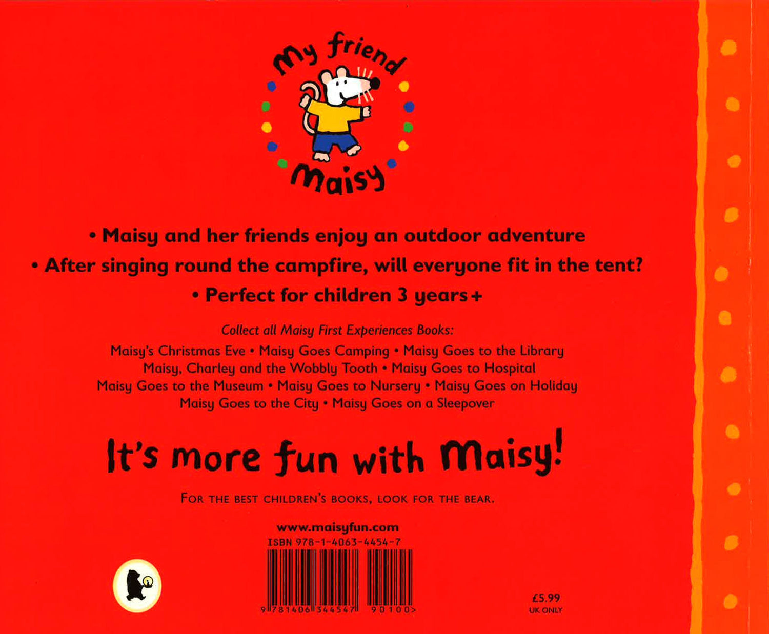 Maisy and her friends enjoy an outdoor adventure. After singing round the campfire, will everyone fit in the tent?