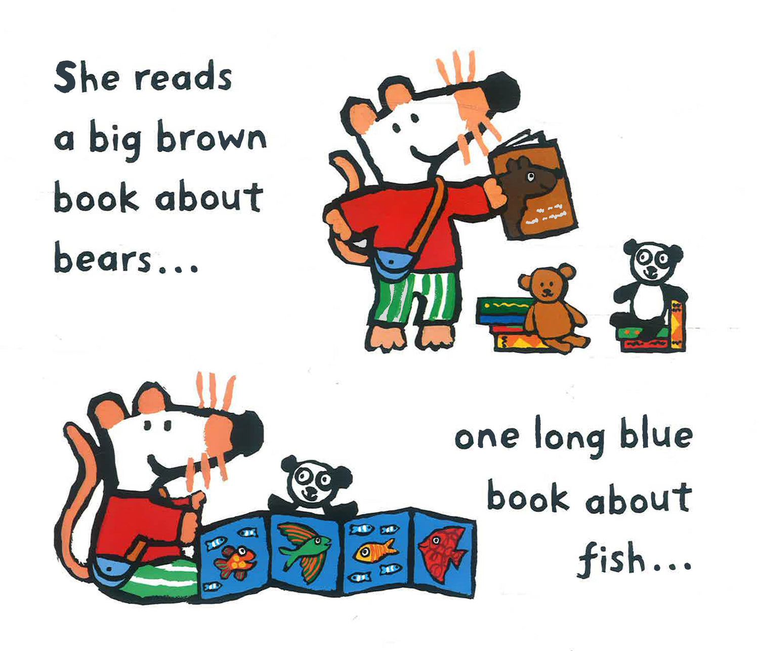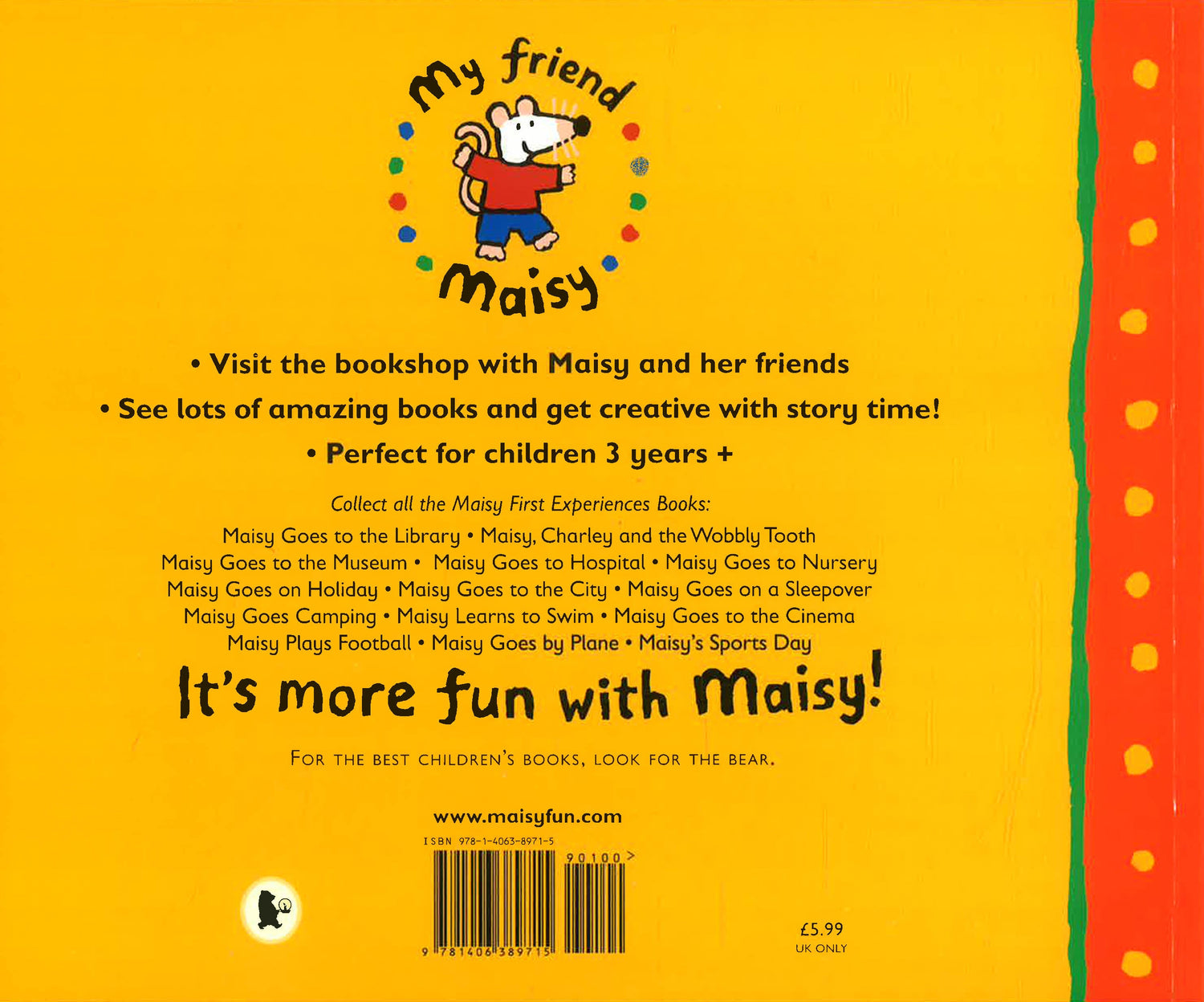 Maisy goes to the bookshop to buy a new book, and she also wants to get one as a present for her friend Tallulah. The bookshop shelves are packed full of amazing books! The shopkeeper is very helpful, too. Maisy finds her friends Charley, Cyril and Eddie inside.