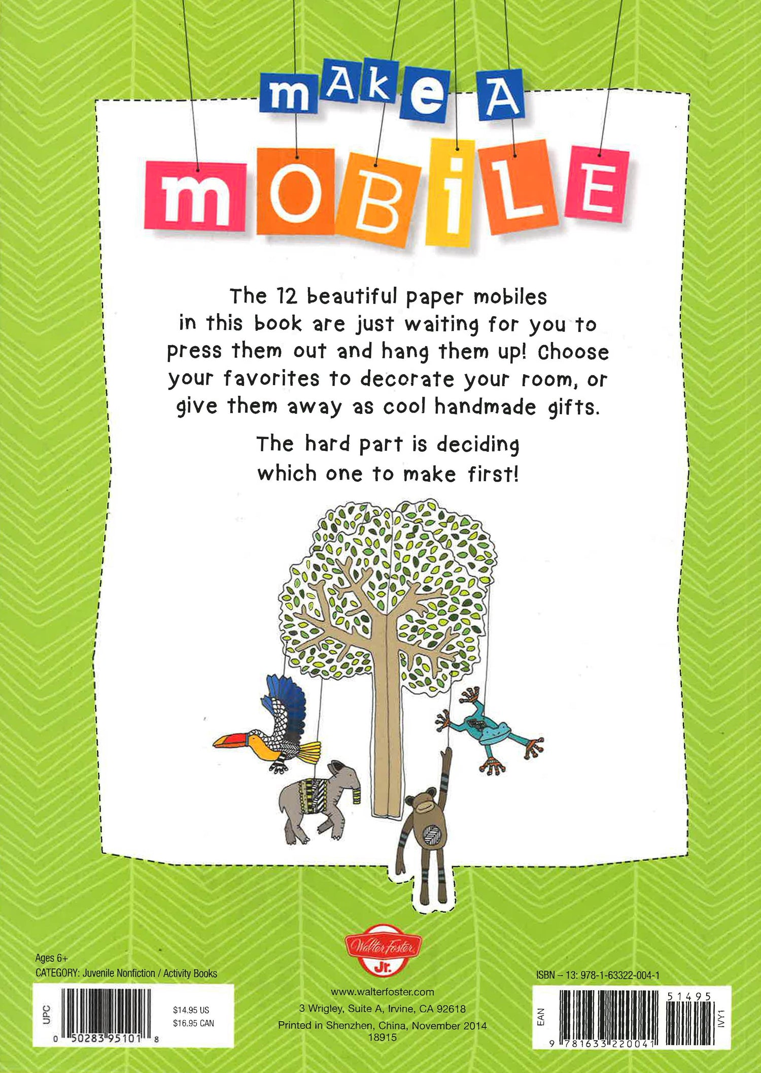 Twelve beautifully designed paper mobiles are perfect to press out, put together, and hang. Bugs, rainforest animals, sea animals, space, ballerinas, carousel scenes, and more, these paper mobiles are sure to ignite imaginations. Kids can choose their favorites to decorate a room or to give away as handmade gifts. The clear, easy to follow, step-by-step instructions are a fun and artistic project for kids and families. These DIY mobiles are a great addition to your crafting toolbox.
