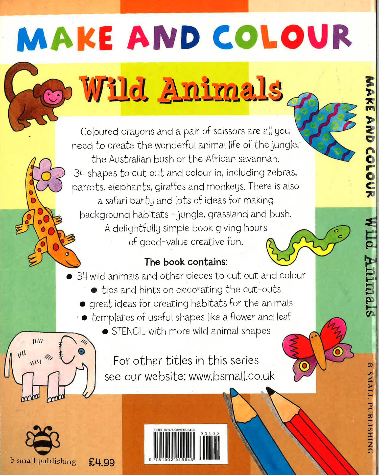 Coloured crayons and a pair of scissors are all you need to create the wonderful animal life of the jungle, the Australian bush or the African savannah. 34 shapes to cut out and colour in, including zebras, parrots, elephants, giraffes and monkeys.