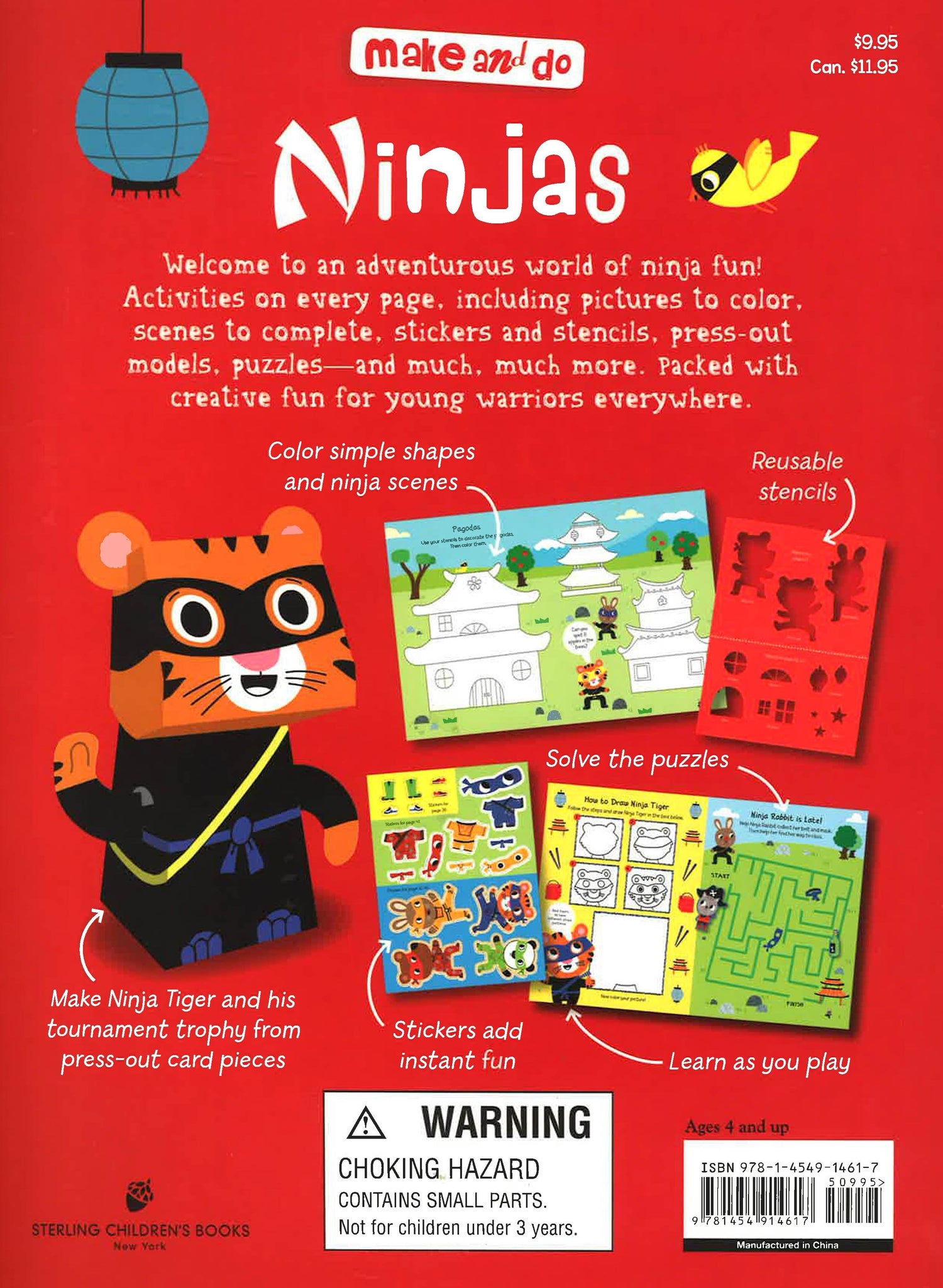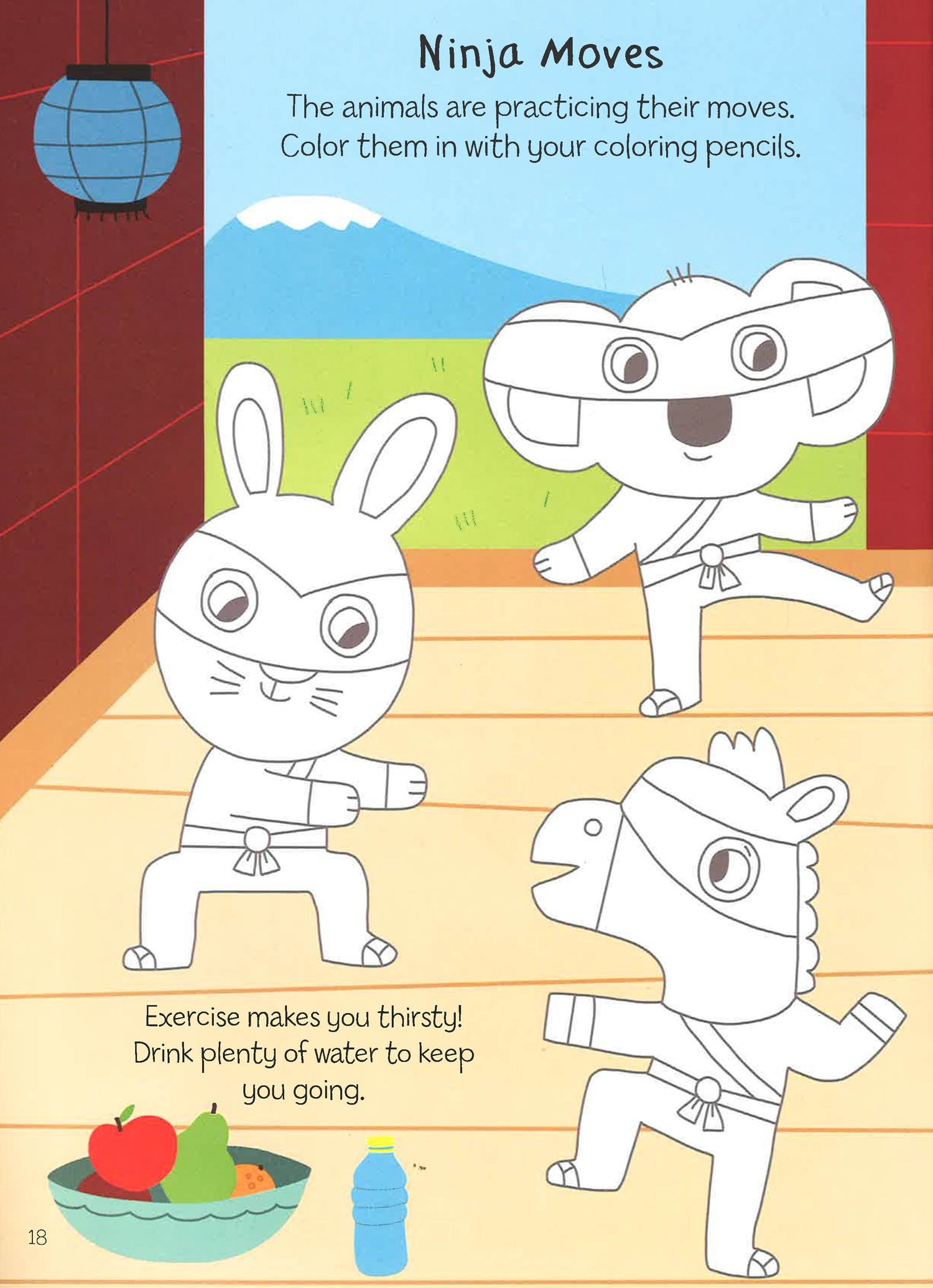 Calling all Ninjas for the first day at school! Color their masks to match their belts; help create a tournament poster, decorate the pagoda where they practice, join the dots to find out which Ninja reached the top of the mountain, and learn a traditional Ninja tale. Theres so much to do!