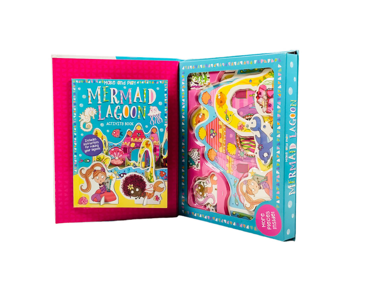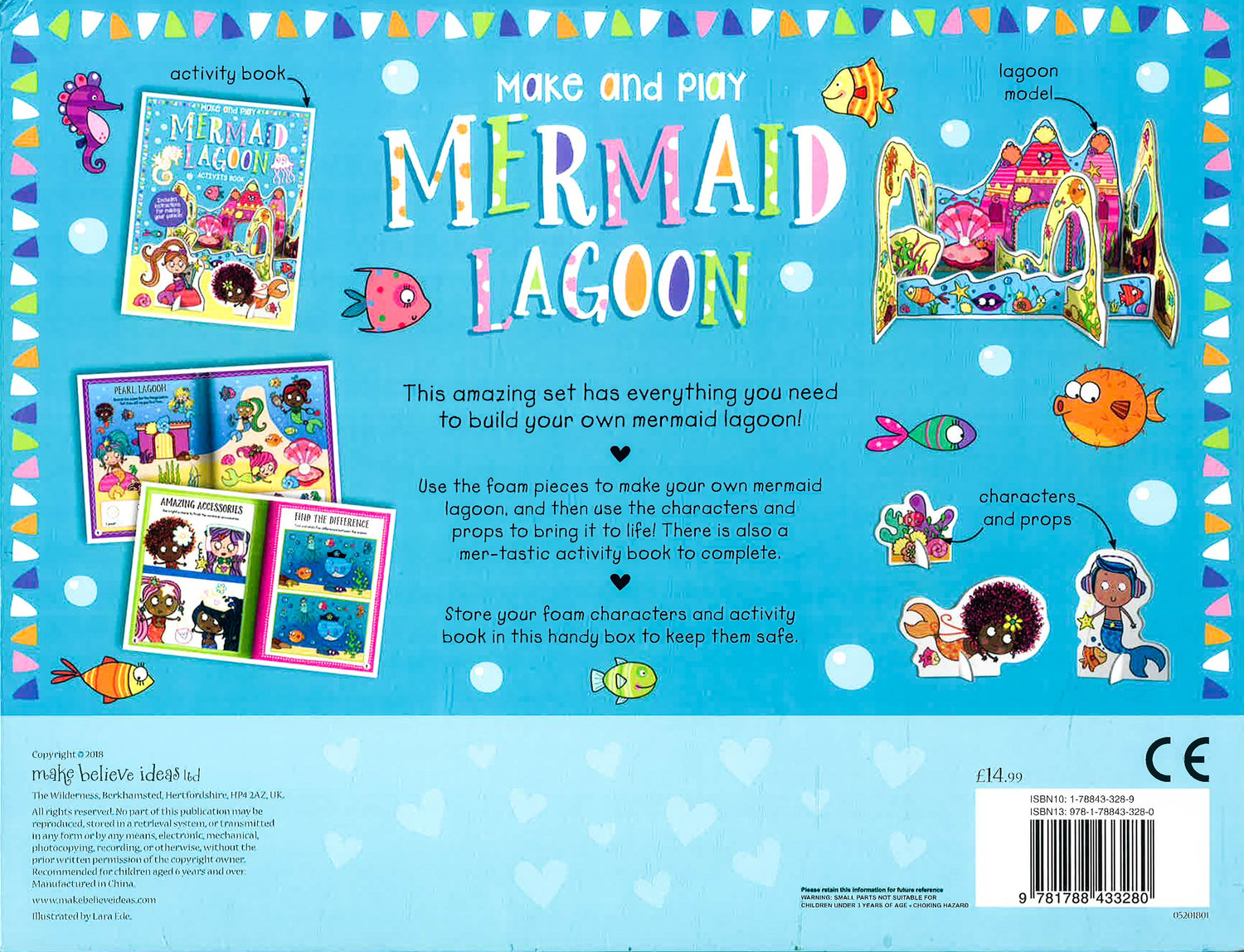 his amazing set has everything you need to build your own mermaid lagoon! Use the foam pieces to make your very own mermaid lagoon, and then put the characters into the scene to bring them to life! There is also a fun mer-tastic activity book to complete. Contains: Activity Book Lagoon Model Characters and props Product Information: ISBN: 9781788433280 Publisher: Make Believe Ideas Format: Paperback Dimensions: 23 x 29.5 x 3.5cm