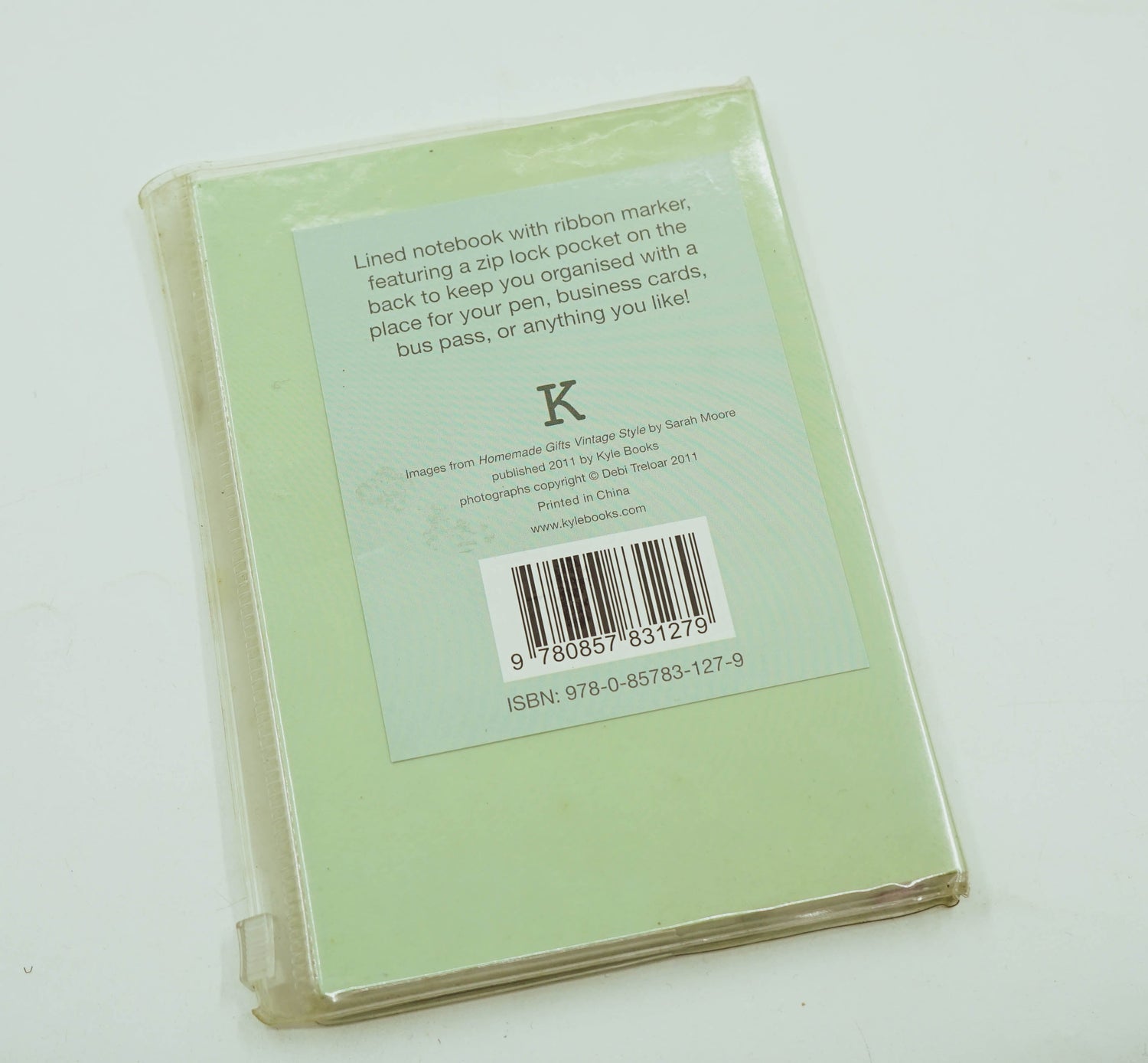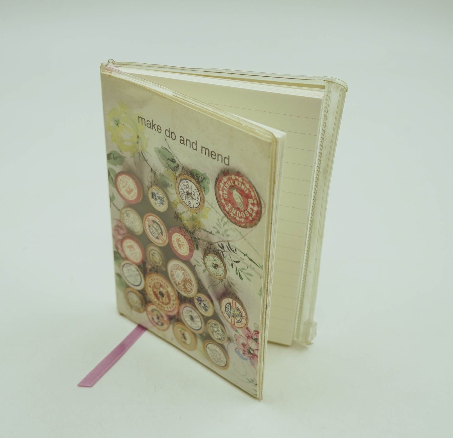 From our Make Do And Mend series, this large 96-page notebook with 'bon voyage' on the front is perfect for all your notes, lists and dreams. The lined paper is lovely and thick, giving a luxurious feel as you turn the pages with a pretty ribbon market that tops it all off. The clear protective sleeve keeps your notes protected and looking good, whilst the zip lock pocket on the back keeps you organised with a place to keep your pen, buisness cards, bus pass or anything you like.