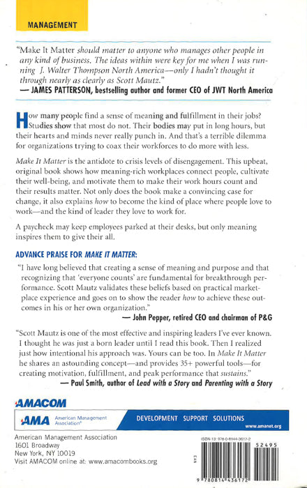 Make It Matter is the antidote to crisis levels of disengagement. This upbeat, original book shows how meaning-rich workplaces connect, inspire, and catapult employees into new realms of productivity and well-being.