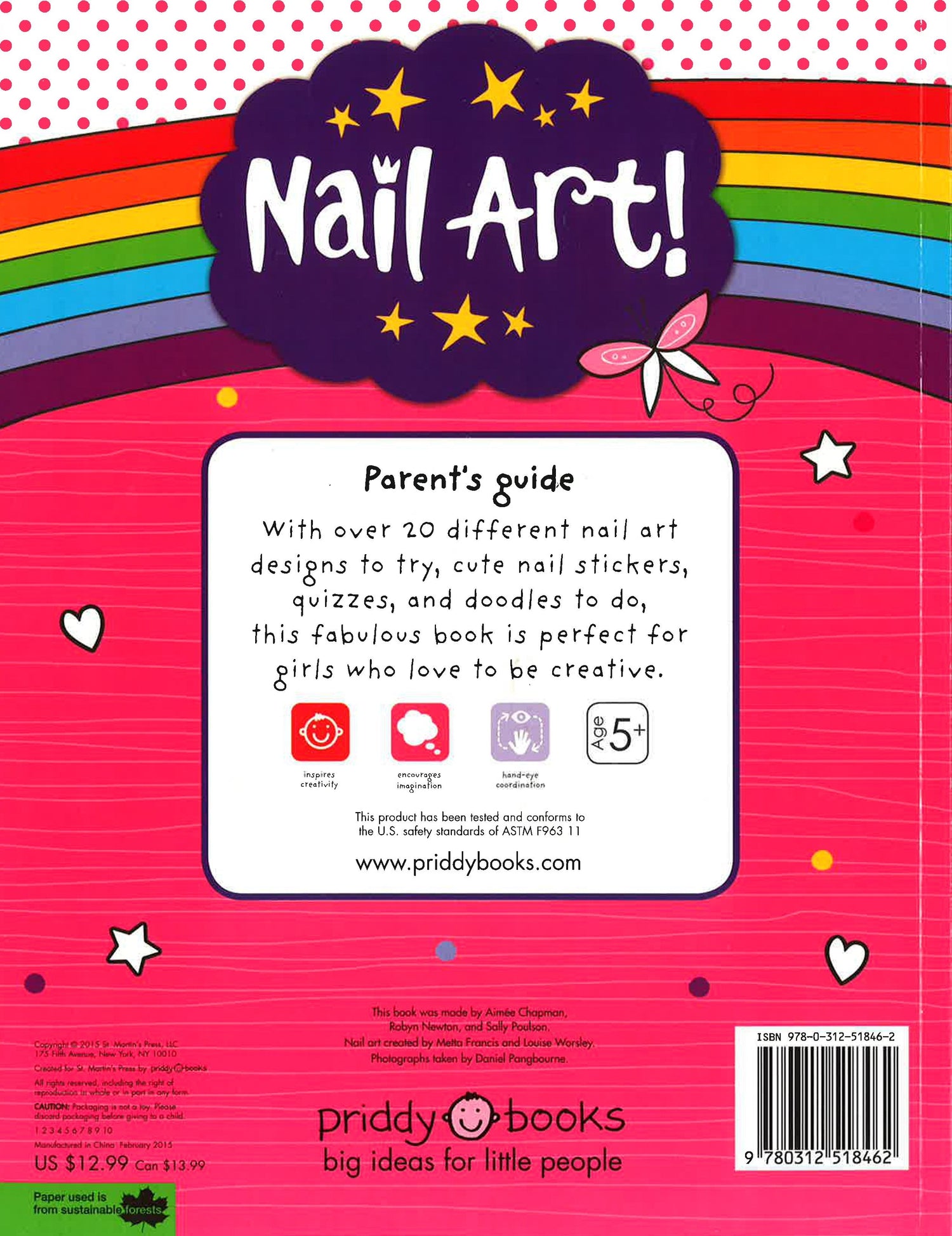 Creative kids will love to transform their nails into fabulous works of art with this fantastic activity book. There are clear and easy-to-follow step-by-step instructions on how to create 25 different nail designs, plus 1020 special nail stickers to use to create super-funky nail designs. As well as nail decorating, there are quizzes to take, cool coloring and doodling to do, as well as pages of stickers to have fun with.