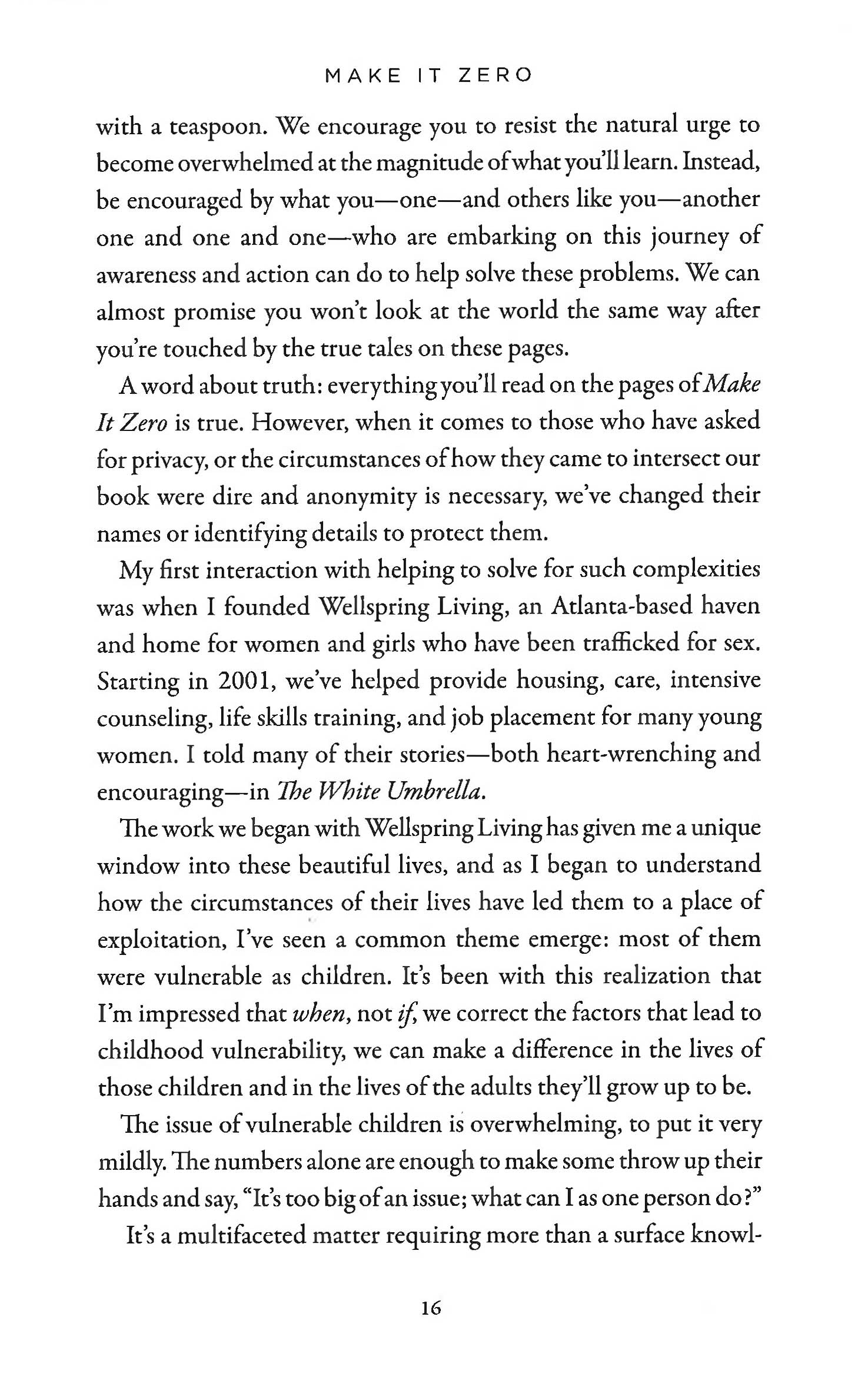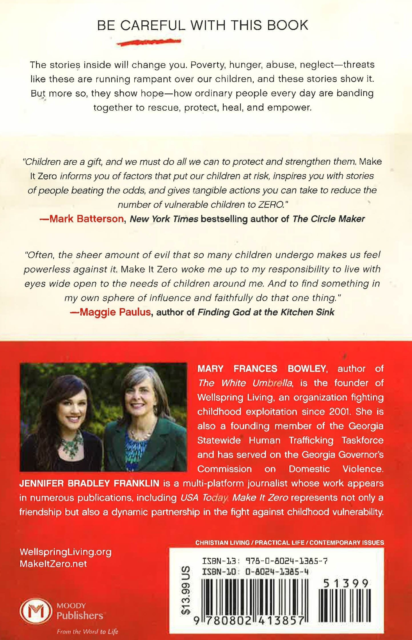 Tying shocking statistics to real stories, Make It Zero explores various forms of childhood vulnerability and offers specific ways for everyone to end them. It reveals the world of opportunity behind a single moment of compassion, and it teaches us that when we help the hopeless dream again, we ourselves come more alive.