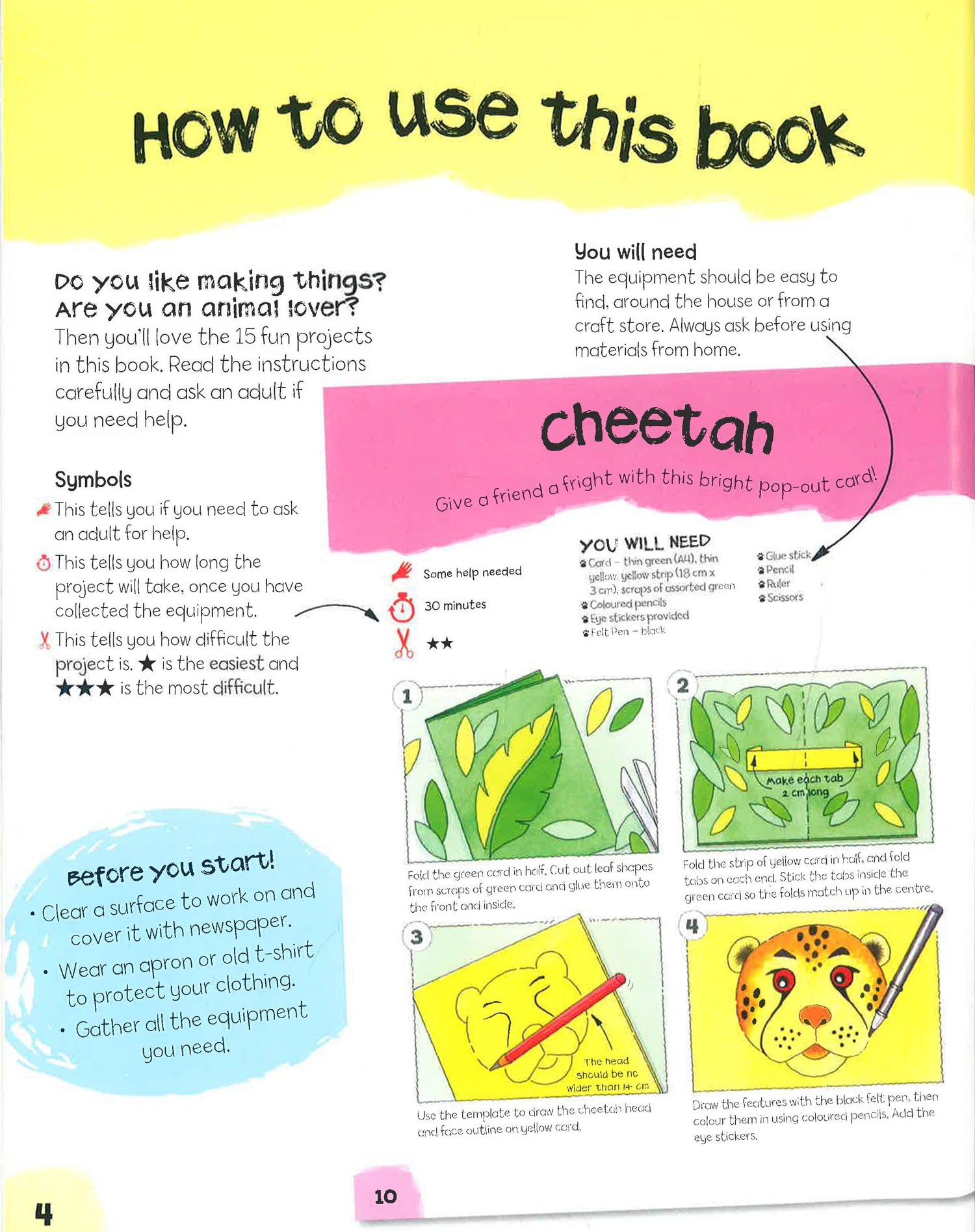 This practical series shows children how to make all sorts of animals using a range of materials and techniques. Illustrated with clear, step-by-step artworks and photographs, each project also has instructions for how to turn it into useful gift. In Safari Animals, make a zebra rocking card, a hippo bookend, a crocodile secret safe and many more!