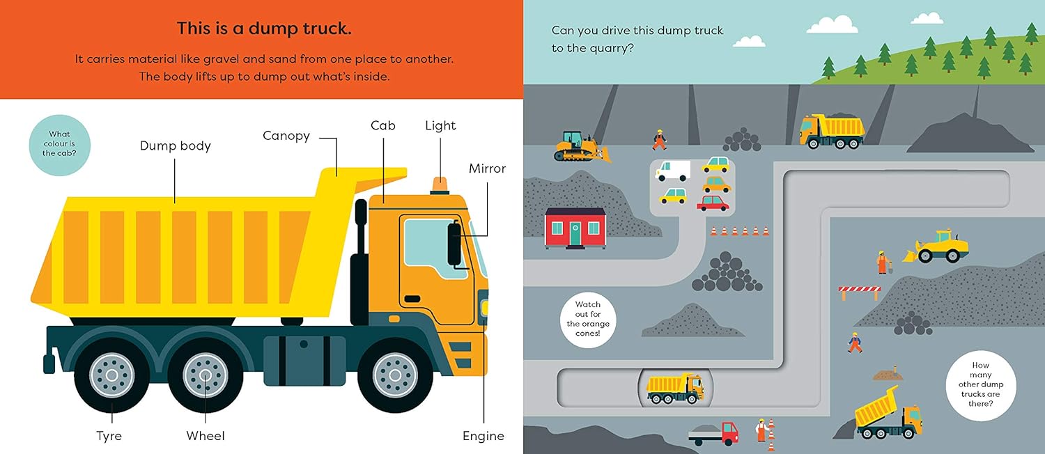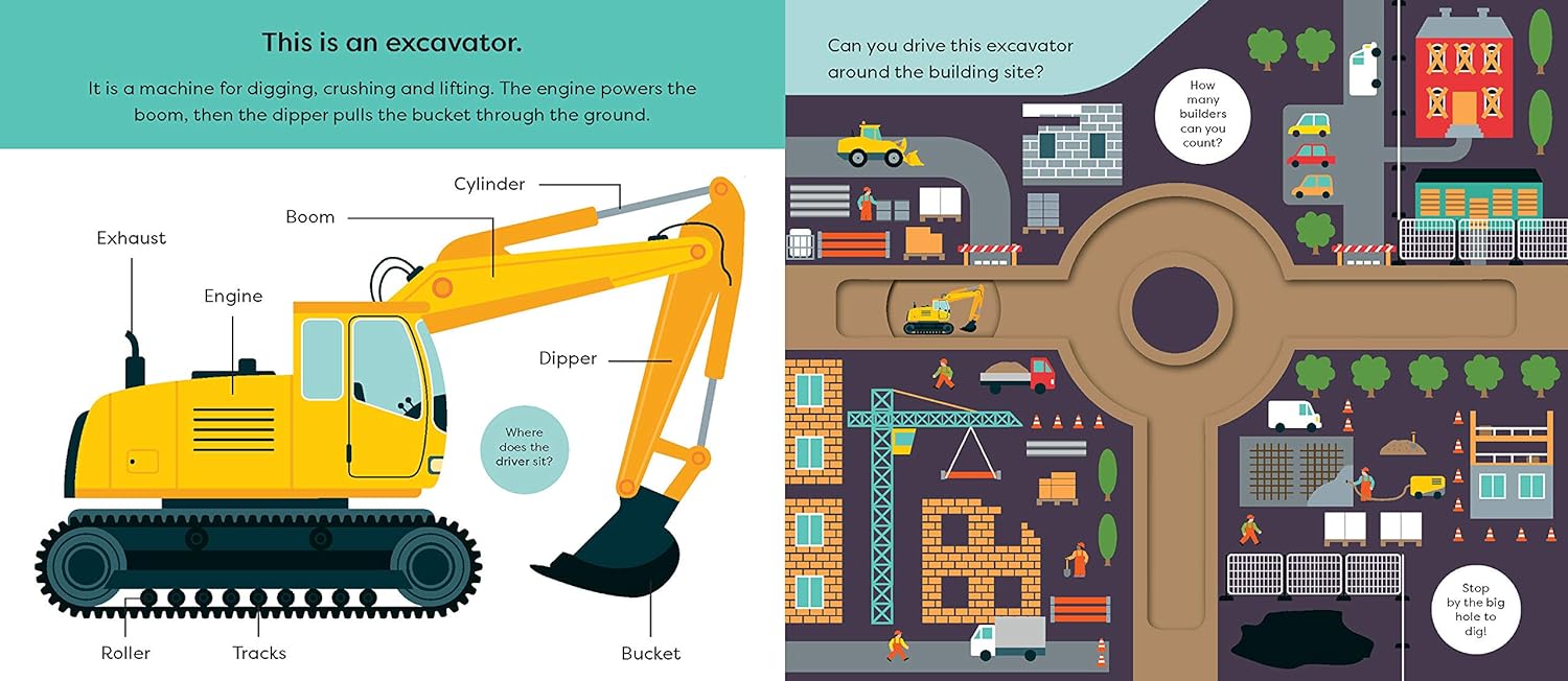 Brand new series of chunky board books featuring things that go and sliding counters! Discover five different building site vehicles in this new series of interactive board books with easy-to-use moving parts. Learn vehicle vocabulary with simple first words, clear diagrams and helpful text prompts to encourage discussion. Then trace 5 types of transport around 5 different tracks with a moving counter on every spread and the cover. The perfect book for children who love diggers and dump trucks - and being in the driving seat! Other titles in the series include: Farm