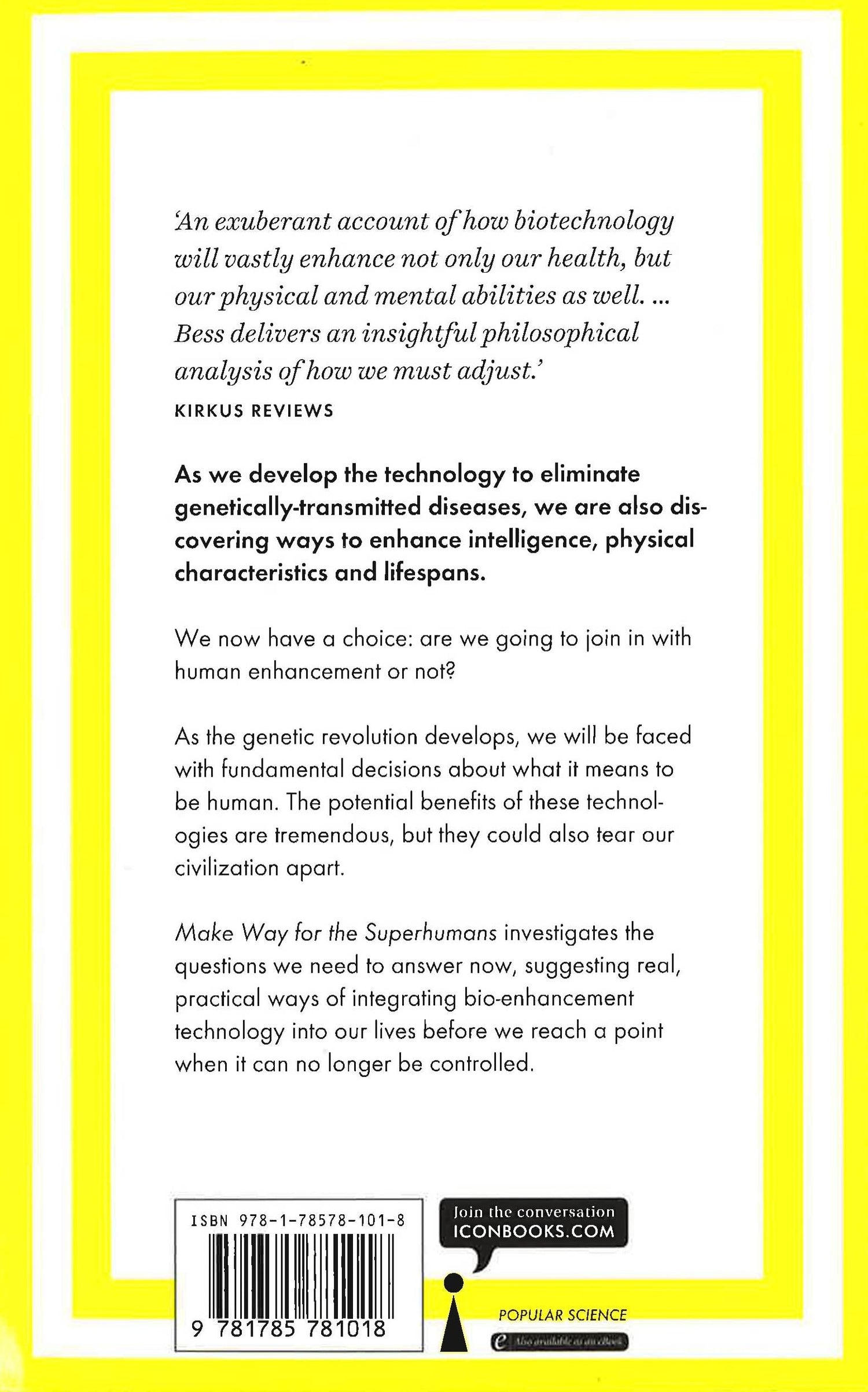 Biomedical research is changing the both the format and the functions of human beings. Very soon the human race will be faced with a choice: do we join in with the enhancement or not? Make Way for the Superhumans looks at how far this technology has come and what aims and ambitions it has. From robotic implants that restore sight to the blind, to performance enhancing drugs that build muscles, improve concentration, and maintain erections, bio-enhancement has already made massive advances. Humans have already developed the technology to transmit thoughts and actions brain-to-brain using only a computer interface. By the time our grandchildren are born, they will be presented with the option to significantly alter and redesign their bodies. Make Way for the Superhumans is the only book that poses the questions that need answering now: suggesting real, practical ways of dealing with this technology before it reaches a point where it can no longer be controlled.