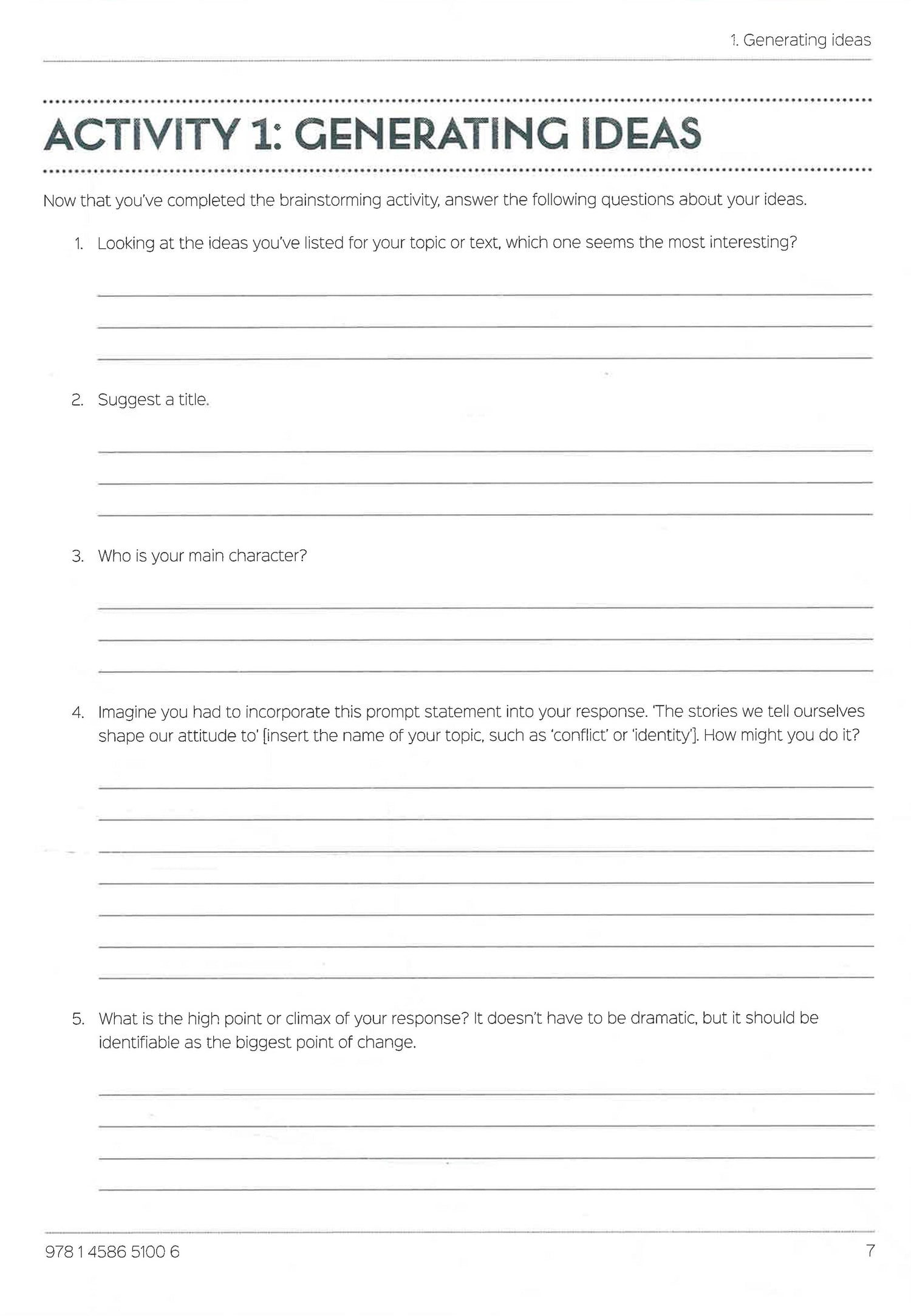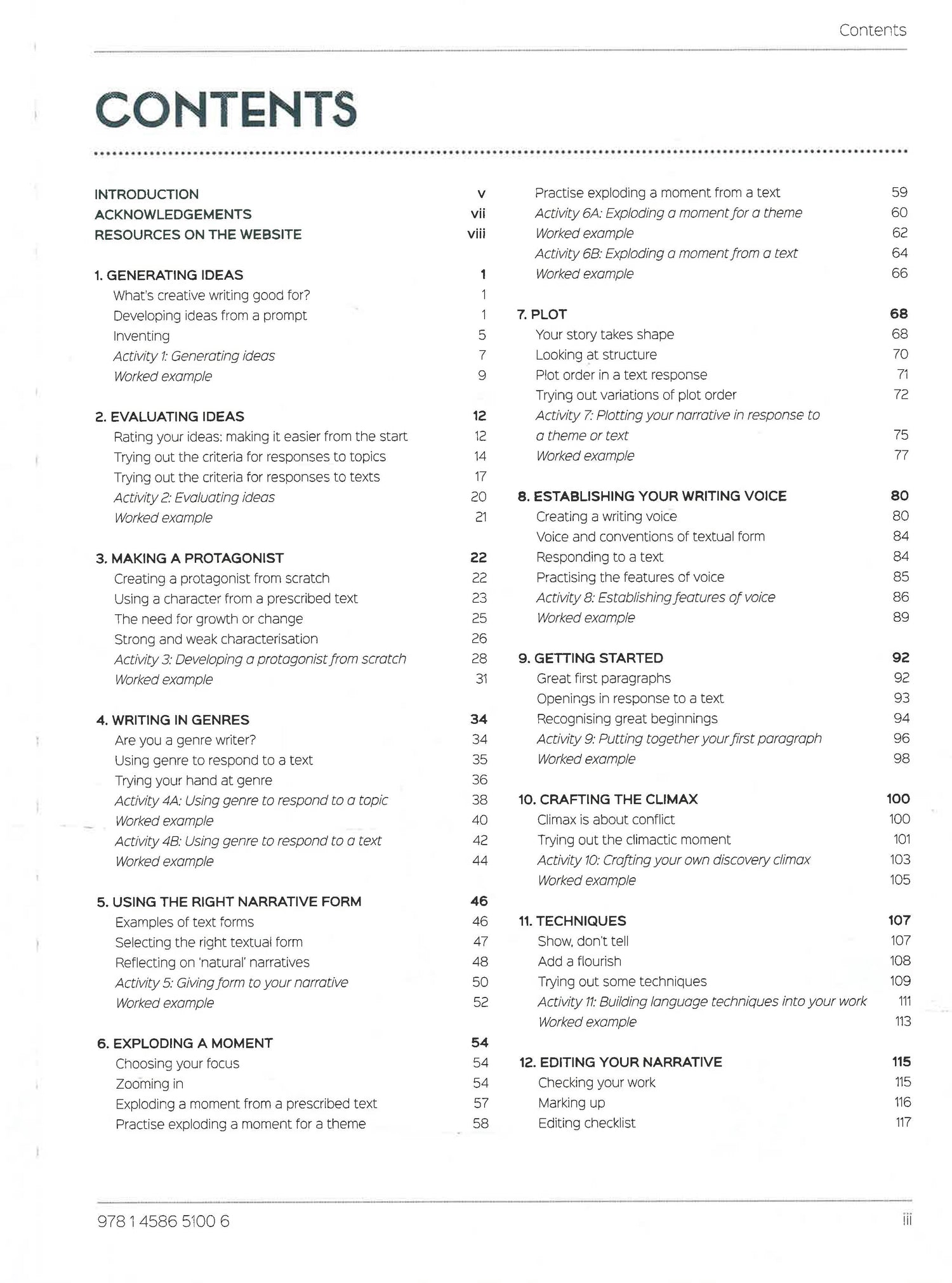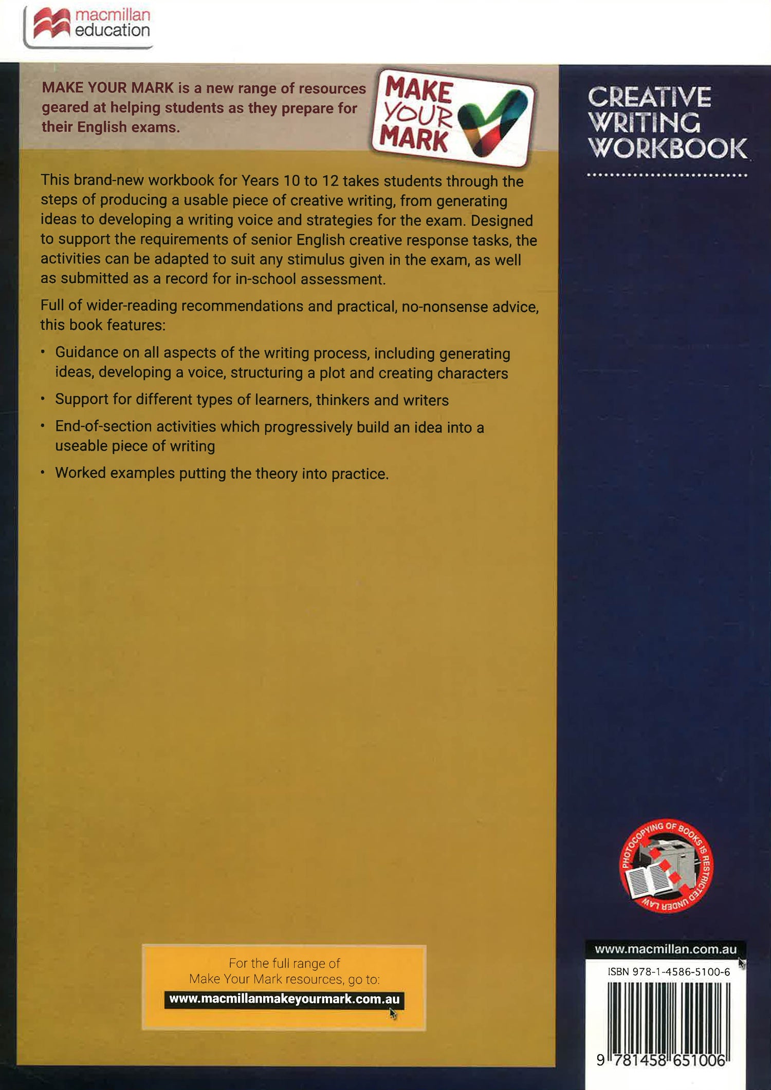 This brand new workbook takes students through the steps of producing a useable piece of creative writing, from generating ideas through to developing a writing voice and strategies for the exam. Designed to support the requirements of senior English creative response tasks, the activities can be adapted to suit any stimulus given in the exam, as well as submitted as a record for in-school assessment. Full of wider reading recommendations and practical, no-nonsense advice, this book will: boost students' confidence in getting started with a creative piece; offer support for different types of learners, thinkers and writers, including ESL students and the more science-minded; motivate students to work through the drafting process.