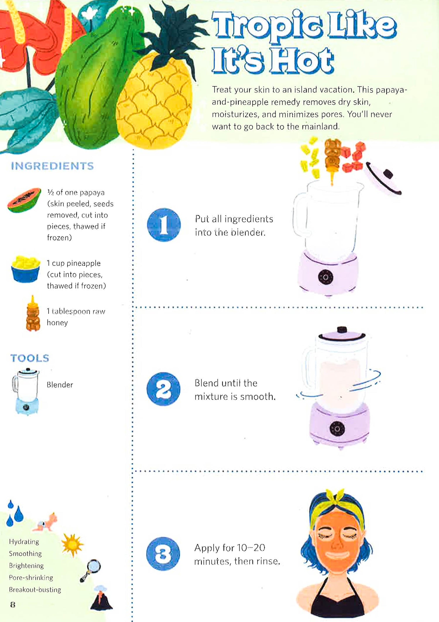 Luxuriating! Refreshing! Renewing! This book has simple and fun recipes that feature wholesome ingredients you can find in your fridge or pantry. Whether you are dry-skinned, oily, or just want refreshing 'me-time,' find a recipe that best suits your needs. Mix the ingredients together in a blender or a bowl and apply the mask for ten to twenty minutes. You'll finish with gorgeous, fresh skin!